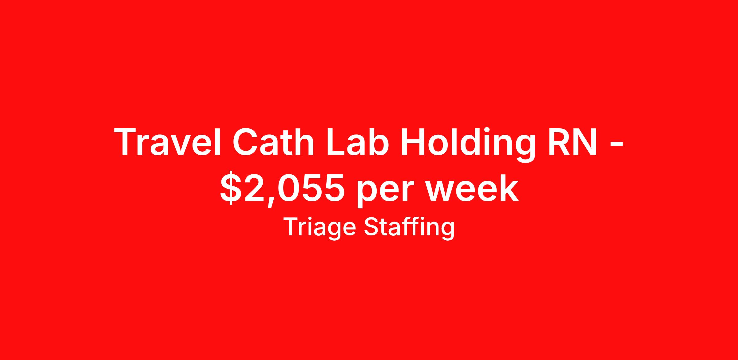 Triage Staffing is seeking a travel nurse RN Cardiac Cath Lab for a travel nursing job in Sumter, South Carolina. Job Description & Requirements Specialty: Cardiac Cath Lab Discipline: RN Start Date: 04/13/2026 Duration: 13 weeks 40 hours per week Shift: 8 hours, days Employment Type: Travel Travel Nursing: Cath Lab South Carolina Location: South Carolina Start Date: 4/13/2026 Shift Details: 8H Days 36 hours per week Length: 13 WEEKS Apply for specific facility details.Cath Lab RN Triage Staffing Job ID DHJADM4F. Posted job title: Nursing: Cath Lab About Triage Staffing At Triage, we prefer to be real . Real about expectations—both ours and yours. Real about how a decision you make today could affect your tomorrows. Real about how compensation actually works. Real about how great—or grating—your next supervisor may be. Being real allows everyone at Triage to be ready . Ready to serve you with real honesty. So if that gig near the ocean is really no day at the beach, or that third shift comes with a second-class rate, we tell you. So you can be ready, too. We staff all five major divisions of acute care—nursing, lab, radiology, cardiopulmonary and rehab therapy, offering: - Competitive, custom pay packages - One point of contact for both travelers and facilities (per division) - A reliable recruiter who's got your back throughout your entire assignment - In-house compliance and accounting specialists - A clinical liaison team available 24/7 to offer medical and professional support and career development - A mentoring program that is run and managed by actual clinicians—yeah, you read that right - And more (because of course there’s more) Are we the biggest? No. Are we the best? That’s rather subjective, but we’re trying to be. Will we work like hell to get you as close to your idea of heaven as possible? Yes. Yes, we will. Benefits: Day One comprehensive, nationwide insurance plans for health, vision and dental and life—including a HSA option Day One 401(k) program with employer-matching contributions once eligible Facility cancelling protection—your time is money on and off-the-clock Guaranteed hours Weekly paychecks via direct deposit Earned vacation bonuses for time worked Paid holidays Employee assistance program (EAP)—your mental health is important, too Continuing education, certification and licensing reimbursement Workers comp—because accidents happen Top-rated professional liability insurance Company provided housing options Referral bonus—$750 in your pocket after they’ve completed a 13-week assignment