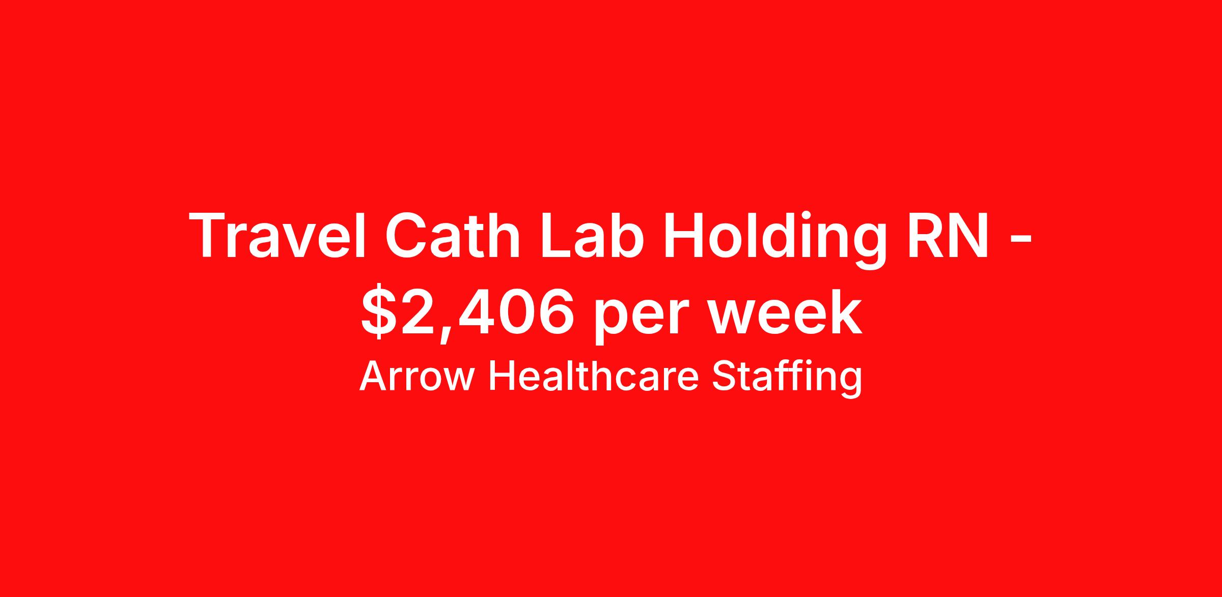 Arrow Healthcare Staffing is seeking a travel nurse RN Cardiac Cath Lab for a travel nursing job in Sumter, South Carolina. Job Description & Requirements Specialty: Cardiac Cath Lab Discipline: RN Start Date: 04/06/2026 Duration: 13 weeks 40 hours per week Shift: 8 hours, days Employment Type: Travel Arrow Healthcare Staffing Job ID 17952541. Pay package is based on 8 hour shifts and 40.0 hours per week (subject to confirmation) with tax-free stipend amount to be determined. Posted job title: Cardiology - Cath Lab Tech Cardiology Cath Lab Tech About Arrow Healthcare Staffing Arrow Healthcare Staffing is a Midwest based travel nursing and allied health recruiting firm. We specialize in local/ travel nursing, medical laboratory, pharmacy, radiology/imaging, therapy, and executive/leadership recruitment. We offer direct hospital contracts and all of the top benefits in the marketplace today. Benefits Medical benefits Vision benefits Weekly pay Benefits start day 1 Holiday Pay 401k retirement plan Dental benefits License and certification reimbursement Guaranteed Hours Continuing Education Cancelation protection Mileage reimbursement Referral bonus