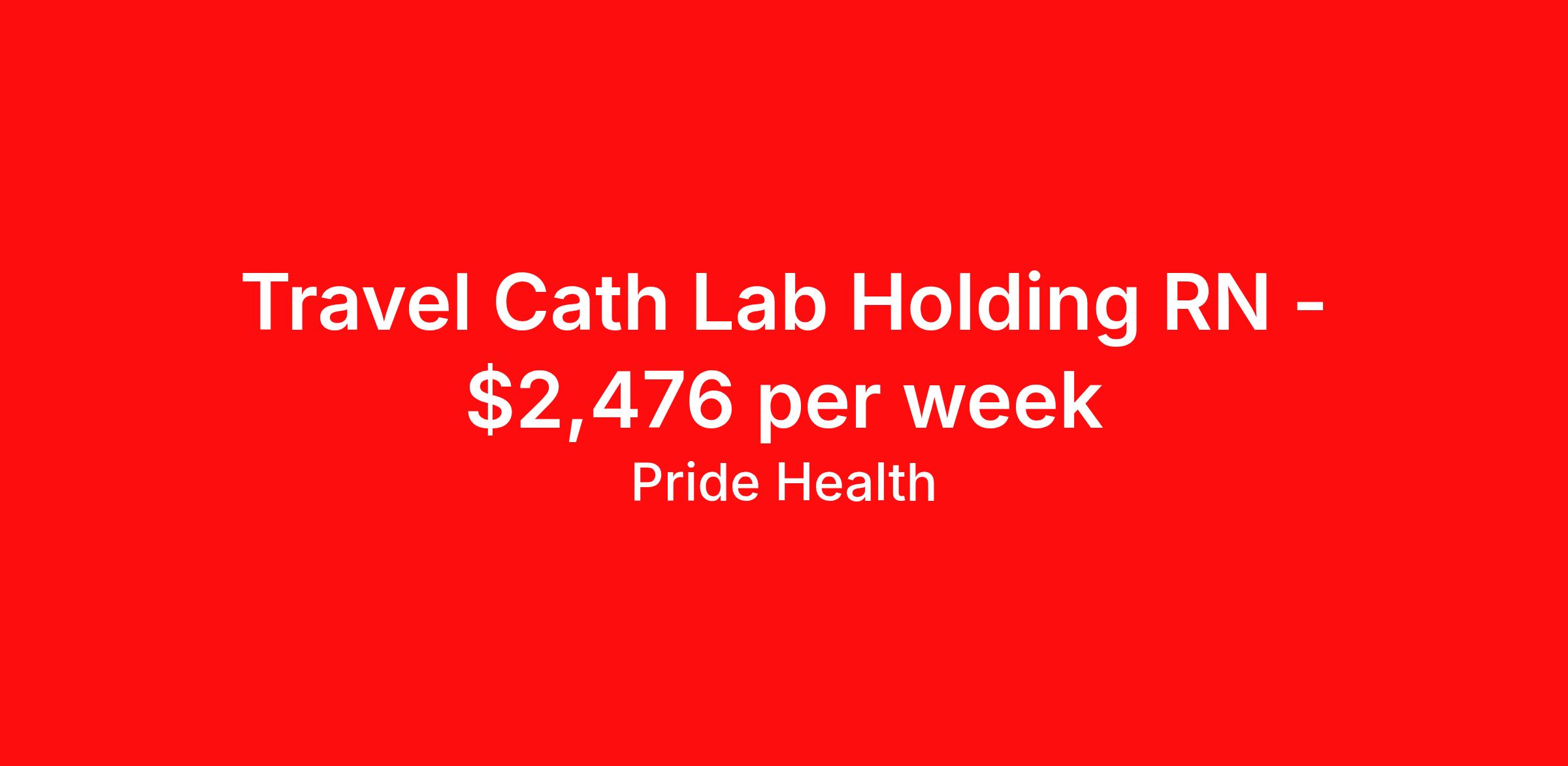 PRIDE Health is seeking a travel nurse RN Cardiac Cath Lab for a travel nursing job in Sumter, South Carolina. Job Description & Requirements Specialty: Cardiac Cath Lab Discipline: RN Start Date: 04/13/2026 Duration: 13 weeks 40 hours per week Shift: 8 hours, days Employment Type: Travel Pride Health Job ID 17952221. Pay package is based on 8 hour shifts and 40.0 hours per week (subject to confirmation) with tax-free stipend amount to be determined. Posted job title: RN:Cath Lab,09:00:00-17:00:00 About PRIDE Health PRIDE Health is the minority-owned healthcare recruitment division of Pride Global—an integrated human capital solutions and advisory firm. With our robust and abundant travel nursing and allied health employment options across the U.S., PRIDE Health will allow you to help change the way the world lives and heals as it connects you with the industry’s leading healthcare organizations. Pride Global offers eligible employee’s comprehensive healthcare coverage (medical, dental, and vision plans), supplemental coverage (accident insurance, critical illness insurance and hospital indemnity), 401(k)-retirement savings, life & disability insurance, an employee assistance program, legal support, auto, home insurance, pet insurance, and employee discounts with preferred vendors. Benefits Weekly pay Holiday Pay Guaranteed Hours 401k retirement plan Cancelation protection Referral bonus Medical benefits Dental benefits Vision benefits
