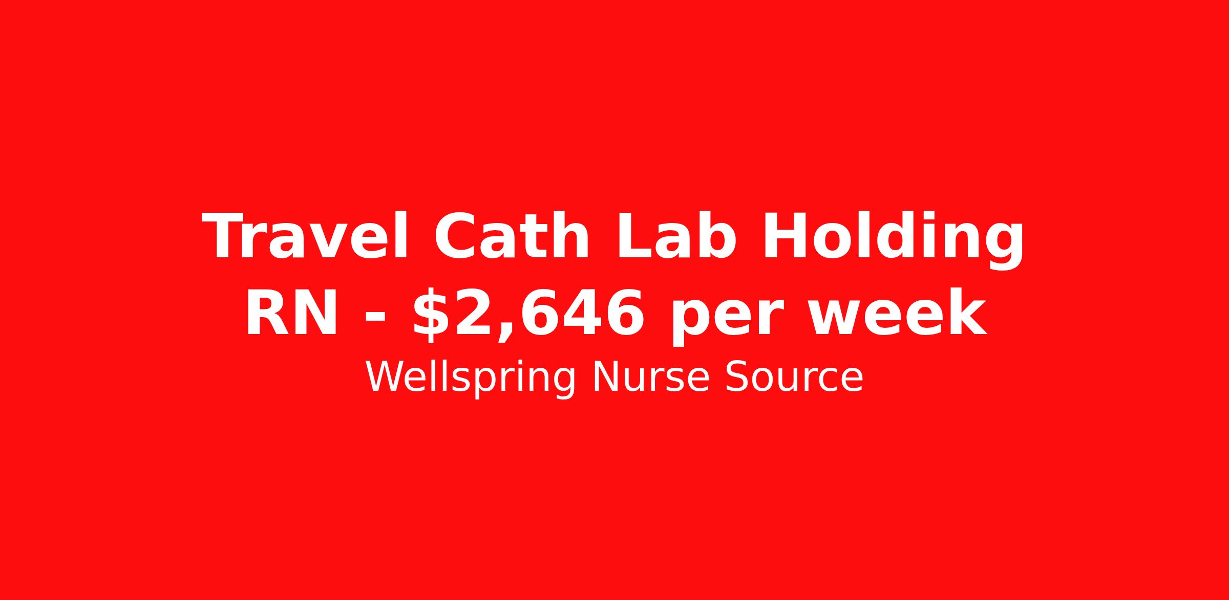 Wellspring Nurse Source is seeking a travel nurse RN Cardiac Cath Lab for a travel nursing job in Sumter, South Carolina. Job Description & Requirements Specialty: Cardiac Cath Lab Discipline: RN Start Date: 04/13/2026 Duration: 13 weeks 40 hours per week Shift: 8 hours, flexible Employment Type: Travel Minimum 2 years of experience required. COVID Vaccine - Required. Performs and documents ongoing assessments including observation, physical examination, laboratory/test results, and patient response to procedural intervention. Reviews and revises plan of care according to change in patient’s status. Incorporates patient teaching/discharge planning to promote optimal patient outcomes. Coordinates and documents appropriate discharge planning and referrals to ensure continuity of care after discharge. Wellspring Nurse Source Job ID 36121103. Pay package is based on 8 hour shifts and 40.0 hours per week (subject to confirmation) with tax-free stipend amount to be determined. Posted job title: RN Cath Lab About Wellspring Nurse Source Wellspring is nurse owned and operated which means that we get you, we stand behind you, and we advocate for you. We are 100% committed to helping you find your best job at the best rate. We are unwavering in our commitment to supporting our clinicians on every step of their travel adventure, assisting with everything from onboarding and payroll to on-the-job clinical support with a dedicated Clinician Success Team. You’re not just a number at Wellspring, you’re a valued member of our family. Join us and experience the Wellspring difference.