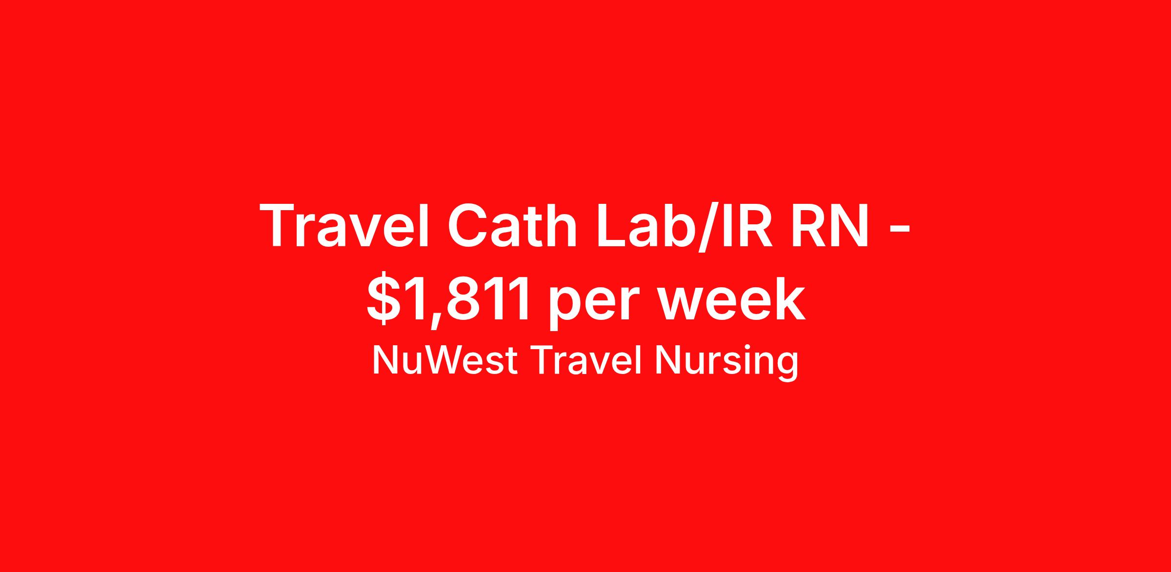 NuWest Travel Nursing is seeking a travel nurse RN Interventional Radiology for a travel nursing job in Aurora, Colorado. Job Description & Requirements Specialty: Interventional Radiology Discipline: RN Duration: 13 weeks 36 hours per week Shift: 12 hours Employment Type: Travel We have a new assignment for RN - Cath Lab/IR in Aurora, CO and are interviewing ASAP. This is a travel assignment, 4x10 Days position at a great facility. Pay Range: $1663.72 - $1957.32 Per Week Benefits include medical, dental, vision, 401K, weekly direct deposit, and more! NuWest Travel Nursing Job ID 236907. Pay package is based on 12 hour shifts and 36 hours per week (subject to confirmation) with tax-free stipend amount to be determined.