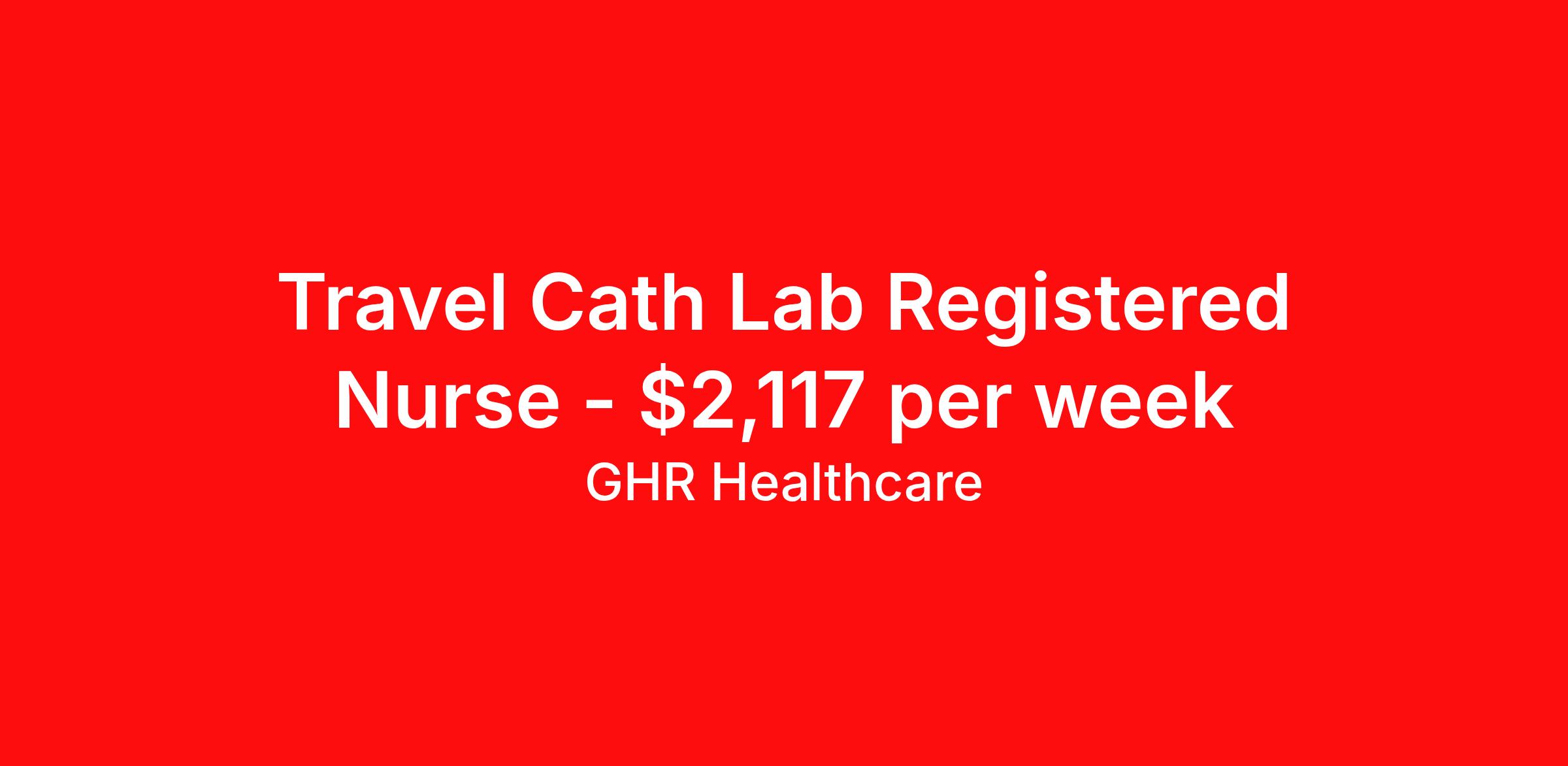 GHR Healthcare is seeking a travel nurse RN Cardiac Cath Lab for a travel nursing job in Lebanon, Indiana. Job Description & Requirements Specialty: Cardiac Cath Lab Discipline: RN Start Date: 04/06/2026 Duration: 13 weeks 36 hours per week Shift: 12 hours Employment Type: Travel GHR Healthcare Job ID 76270353. Pay package is based on 12 hour shifts and 36 hours per week (subject to confirmation) with tax-free stipend amount to be determined. About GHR Healthcare For over 30 years, GHR Healthcare has been the bridge between healthcare professionals and the facilities that need them nationwide. We're committed to uncovering your ideal fit, supported by GHR's dedication to competitive compensation, transparent communication, and a devoted team that genuinely cares about your career journey. You can trust us to stand by your side as your advocate, confidante, and partner in advancing your career. At GHR, care and consideration are at the heart of everything we do. Visit ghrhealthcare.com to learn more.