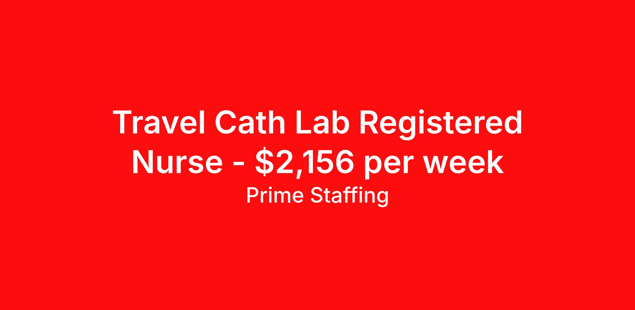 Prime Staffing is seeking a travel nurse RN Cardiac Cath Lab for a travel nursing job in San Diego, California. Job Description & Requirements Specialty: Cardiac Cath Lab Discipline: RN Start Date: 04/06/2026 Duration: 13 weeks 36 hours per week Shift: 12 hours Employment Type: Travel About the Position Specialty: RN – Cath Lab Experience: 1–2 years of experience in a Cardiac Catheterization Lab or similar critical care setting License: Active State or Compact RN License Certifications: BLS – AHA, ACLS – AHA Must-Have: Proficient in pre-, intra-, and post-procedure care; familiarity with cath lab equipment and sterile techniques Description: The Cath Lab RN assists with diagnostic and interventional cardiac procedures. Responsibilities include preparing patients, administering medications, monitoring vitals, circulating during procedures, and ensuring post-procedural care. Collaborates closely with cardiologists and technologists to ensure safe, efficient patient outcomes. Requirements Required for Onboarding: Active RN License BLS ACLS Prime Staffing Job ID 35941462. Pay package is based on 12 hour shifts and 36.0 hours per week (subject to confirmation) with tax-free stipend amount to be determined. Posted job title: RN:Cath Lab,07:00:00-19:30:00 About Prime Staffing At Prime Staffing, we understand the importance of finding the perfect fit for both our clients and candidates. Prime Staffing utilizes a unique matchmaking approach, providing the most qualified contingent staffing to our clients, and the most competitive contracts to our workforce. Our experienced team takes the time to get to know both our clients and candidates, their needs, and preferences, to ensure that each placement is a success. We offer a wide range of staffing services including temporary, temp-to-perm, and direct hire placements. Our extensive network of qualified candidates includes nurses, allied healthcare professionals, corporate support professionals and executives.