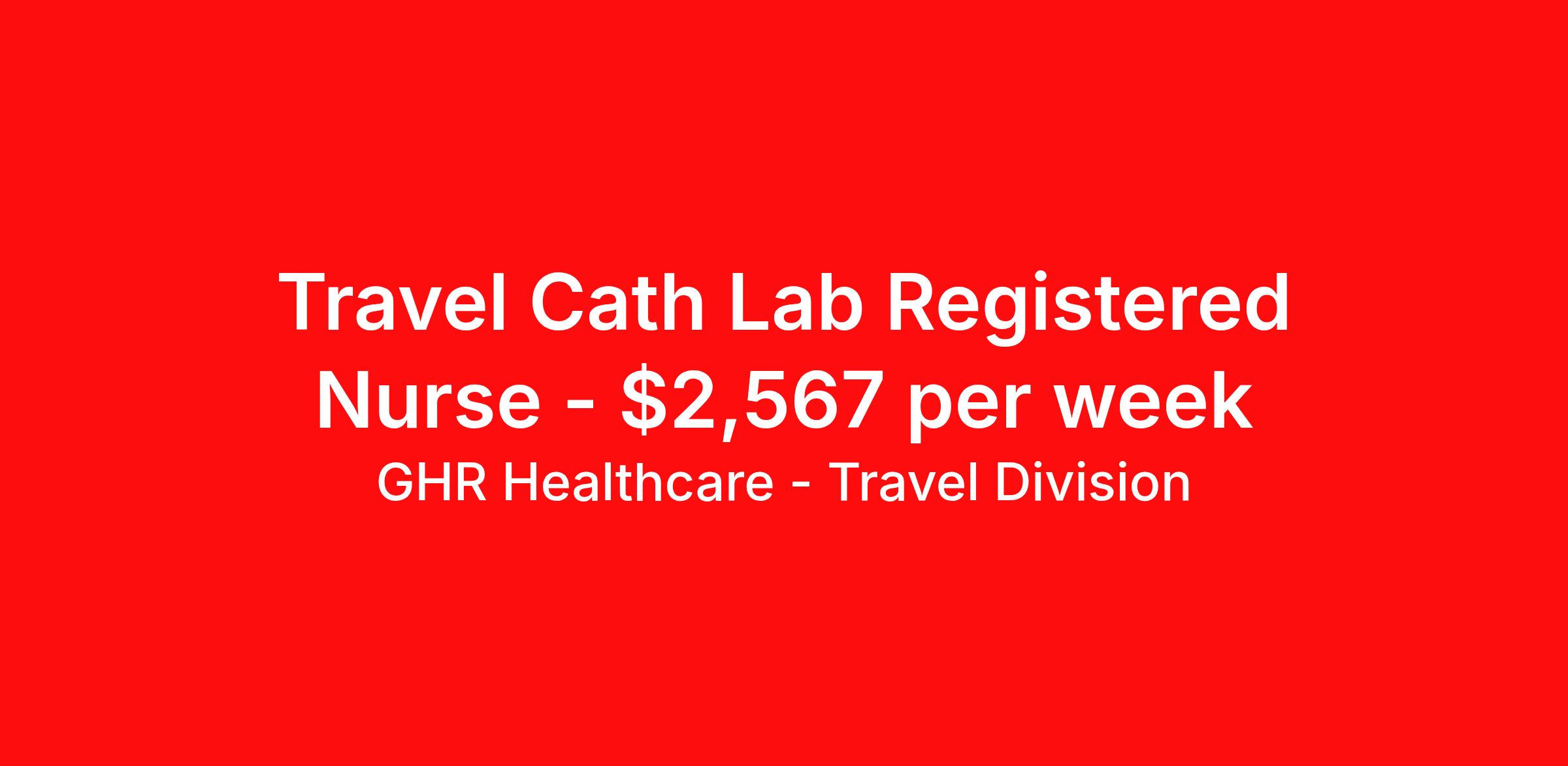 GHR Healthcare - Travel Division is seeking a travel nurse RN Cardiac Cath Lab for a travel nursing job in Easton, Maryland. Job Description & Requirements Specialty: Cardiac Cath Lab Discipline: RN Start Date: 04/06/2026 Duration: 13 weeks 36 hours per week Shift: 12 hours Employment Type: Travel GHR Healthcare - Travel Division Job ID 76202533. Pay package is based on 12 hour shifts and 36 hours per week (subject to confirmation) with tax-free stipend amount to be determined. About GHR Healthcare - Travel Division For over 30 years, GHR Healthcare has been the bridge between healthcare professionals and the facilities that need them nationwide. We're committed to uncovering your ideal fit, supported by GHR's dedication to competitive compensation, transparent communication, and a devoted team that genuinely cares about your career journey. You can trust us to stand by your side as your advocate, confidante, and partner in advancing your career. At GHR, care and consideration are at the heart of everything we do. Visit ghrhealthcare.com to learn more.