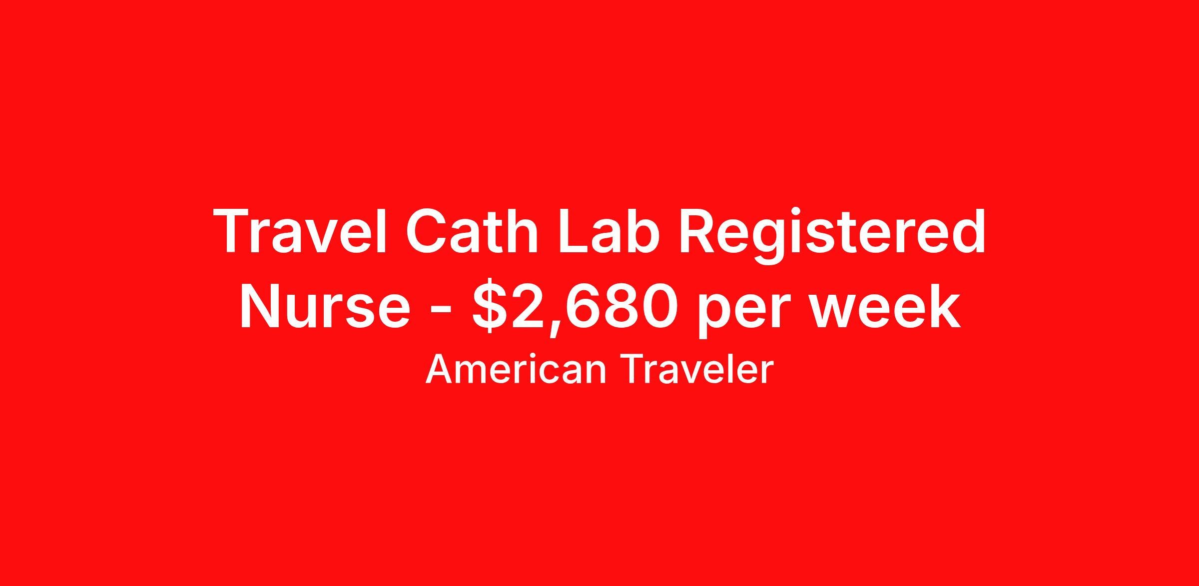 American Traveler is seeking a travel nurse RN Cardiac Cath Lab for a travel nursing job in Snellville, Georgia. Job Description & Requirements Specialty: Cardiac Cath Lab Discipline: RN Start Date: ASAP Duration: 14 weeks 40 hours per week Shift: 10 hours, days Employment Type: Travel Assignment Overview Shift: Days, 4x10hrs Hours: 40 hrs/wk Start Date: Apr 27, 2026 Length: 14 weeks Openings: 1 Description American Traveler is seeking an experienced RN for a Cath Lab position requiring BLS and ACLS certifications, with call responsibilities and a 4x10 day shift schedule. Details Hospital-based Cath Lab unit serving an adult to geriatric patient population 3 rooms with 5 beds and an average daily census of 8–10 patients Procedures include circulation, dysrhythmia interpretation and management, and procedural sedation administration and monitoring EMR systems used: Epic and Pyxis Day shift, 4x10-hour shifts, 7:00 AM–5:30 PM Every third weekend required Approximately 10 call days per month Floating required within the facility and within scope of practice, with the possibility of floating to a sister campus Requirements Active GA or compact RN license required Current BLS and ACLS certifications required Minimum 1 year of Cath Lab RN experience required Proficiency with Epic EMR preferred Copies of required certifications must be provided for consideration Two supervisory references (Manager level or above; charge nurses not accepted) are strongly preferred for consideration Additional Information First-time travelers are welcome to apply Scrubs are provided by the facility RTO maximum is 7 days; RTO cannot be requested during the first week of assignment If one or two major holidays fall within the assignment period, the traveler is expected to work all of them with no holiday RTO permitted; if three major holidays fall within the assignment period, the traveler is expected to work two, with one holiday RTO request eligible for review Major holidays include: Memorial Day, Independence Day, Labor Day, Thanksgiving/Black Friday, Christmas Eve/Christmas Day, and New Year's Eve/New Year's Day No scheduling requests or alternate shift arrangements are permitted; the posted shift is firm Local candidates are accepted Travelers must have been away from all facilities within this health system for at least one full year before returning as a traveler Full compliance with onboarding requirements is necessary to begin on time American Traveler Job ID P-695473. Pay package is based on 10 hour shifts and 40 hours per week (subject to confirmation) with tax-free stipend amount to be determined. Posted job title: Travel RN - Cath Lab/EP About American Traveler With over 25 years of experience, American Traveler has established a reputation for outstanding customer service. Our team ensures a smooth, worry-free experience for those starting on or expanding their travel nursing and allied careers. With thousands of travel nursing and allied jobs nationwide, our attentive and approachable recruiters find positions that align perfectly with your career aspirations and personal requirements. American Traveler offers exceptional benefits, including premium medical, dental, vision and life insurance beginning day one of your assignment, generous 401(k) match, substantial housing stipends, and more. Additionally, with 24/7 support and access to our in-house clinicians, you are assured confidence and comfort throughout your assignment. With our team behind you, you can relax and enjoy a rewarding travel career.