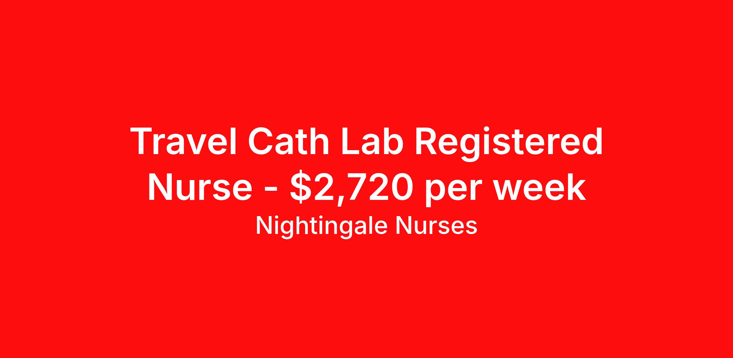 Nightingale Nurses is seeking a travel nurse RN Cardiac Cath Lab for a travel nursing job in Roanoke, Virginia. Job Description & Requirements Specialty: Cardiac Cath Lab Discipline: RN Start Date: 04/06/2026 Duration: 13 weeks 40 hours per week Shift: 10 hours, days Employment Type: Travel About Nightingale Nurses the first name in travel nursing You may not realize it, but as an RN with real world hospital experience, you are legendary. To the lives you’ve helped save, the patients you’ve cared for, and to the hospitals where you’ve done it. And you’re just getting started. Legendary is where Nightingale begins. We’re the first name in travel nursing, representing only the very best RNs. That’s why hospitals prefer us, allowing us to offer exceptional travel nursing assignments all over the US, as well as the highest pay rates and most extensive benefits in the industry. Nightingale facilitates every aspect of your travel nursing assignment, so you can focus on doing what you do best. We want you to grow, explore, and enjoy unrivaled liberty, the freedom to nurse.