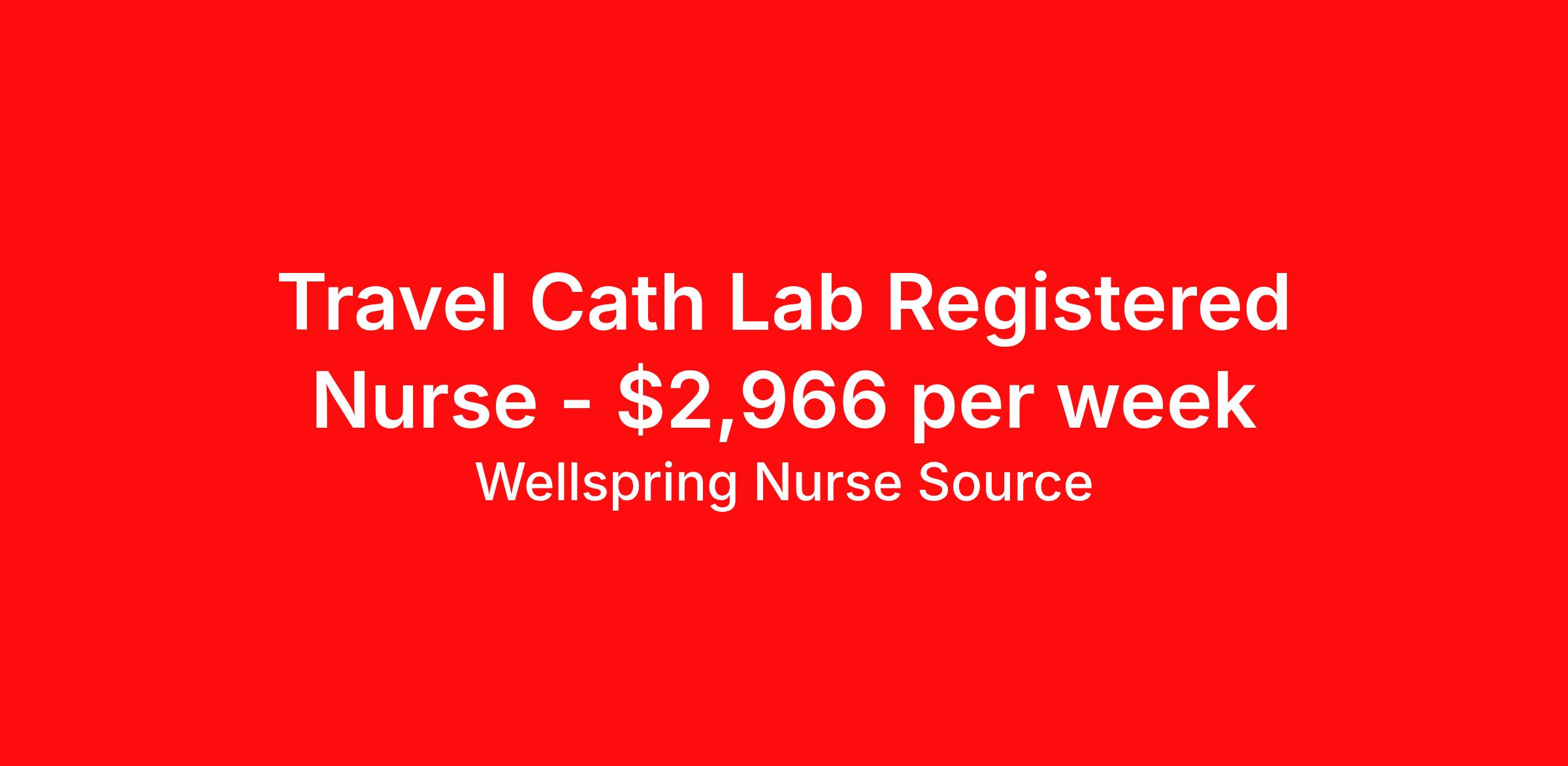 Wellspring Nurse Source is seeking a travel nurse RN Cardiac Cath Lab for a travel nursing job in Glenwood Springs, Colorado. Job Description & Requirements Specialty: Cardiac Cath Lab Discipline: RN Start Date: ASAP Duration: 13 weeks 40 hours per week Shift: 10 hours, days Employment Type: Travel Wellspring Nurse Source Job ID 35911684. Pay package is based on 10 hour shifts and 40.0 hours per week (subject to confirmation) with tax-free stipend amount to be determined. Posted job title: RN Cath Lab About Wellspring Nurse Source Wellspring is nurse owned and operated which means that we get you, we stand behind you, and we advocate for you. We are 100% committed to helping you find your best job at the best rate. We are unwavering in our commitment to supporting our clinicians on every step of their travel adventure, assisting with everything from onboarding and payroll to on-the-job clinical support with a dedicated Clinician Success Team. You’re not just a number at Wellspring, you’re a valued member of our family. Join us and experience the Wellspring difference.