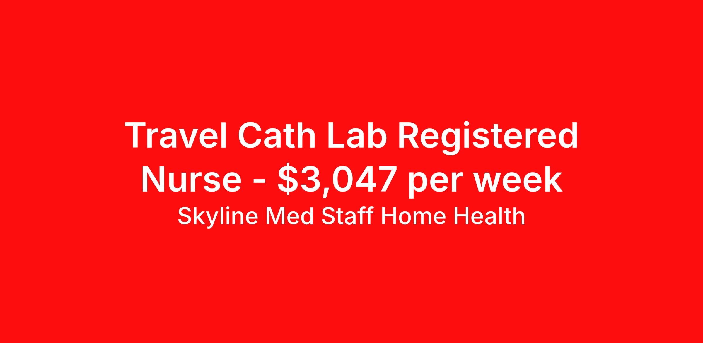 Skyline Med Staff Home Health is seeking a travel nurse RN Cardiac Cath Lab for a travel nursing job in Santa Barbara, California. Job Description & Requirements Specialty: Cardiac Cath Lab Discipline: RN Start Date: 04/06/2026 Duration: 13 weeks 40 hours per week Shift: 10 hours, days Employment Type: Travel Weekly amount stated in the job postings is estimated based on estimated hourly wages and potential stipends available for the location of the assignment. Pay package is calculated on bill rate at the time job was posted, but can change or vary without notice. Exact pay packages might vary as this is an estimate. Our recruiter would be happy to build an exact pay package for you for each job. Join the Best in Travel Nursing! Skyline Med Staff was honored as the 1 Best Travel Nursing Company in 2025 by BluePipes, a recognition driven by glowing reviews from travel healthcare professionals. Our recruiters are consistently praised on Google for their responsiveness, dedication, accessibility, and industry knowledge. Ready to experience the difference? Apply for a job today and see why travel nurses choose Skyline! As a traveler with Skyline Med Staff, you'll have a dedicated recruiter supporting you every step of the way and available whenever you need them. We are a Woman Owned Agency providing clinicians with Health Insurance through Blue Cross Blue Shield, along with Dental and Vision coverage, plus $500 referral bonuses! We’re seeking committed Nursing professionals who excel in delivering quality patient care and can adapt to diverse work environments. Required for Submission: 1. Minimum of 1 year recent work experience in the specialty of the job applying for 2. A current BLS/CPR certification through American Heart Association 3. Active License in the state of the job location We look forward to connecting and working with you to find your next job opportunity! Skyline Med Staff Home Health Job ID 36030681. Pay package is based on 10 hour shifts and 40.0 hours per week (subject to confirmation) with tax-free stipend amount to be determined. Posted job title: RN:Cath Lab,07:00:00-17:00:00 About Skyline Med Staff Home Health Join the Top- Rated Travel Healthcare Team! Skyline Med Staff was named as the 1 Best Travel Healthcare Company in 2025 by BluePipes, a recognition driven by glowing reviews from travel healthcare professionals. Our recruiters are consistently praised on Google for their responsiveness, dedication, accessibility, and industry knowledge. Ready to experience the difference? Apply for a job today and see why healthcare professionals choose Skyline! Certified Women Owned Business We believe that travel is good for the soul. We want to be on your journey with you and find the right job that fits you Skyline Med Staff is committed to one vision treating others the way that THEY want to be treated. The executive team at Skyline Med Staff focuses on a commitment to quality, consistency, and the highest level of service. Our team members continually strive to build long term relationships that center on you and helping you achieve your goals. Some of the Benefits you will receive with Skyline Med Staff: Over 30 years of combined experience in the staffing industry Higher Take-Home Pay Rates Dedicated Personal Recruiter We are available to you 24/7 Health Insurance Plan Options Tax Free Per Diems, Housing Stipends and Travel Reimbursements Joint Commission Certified Contracts in all 50 states Referral and Loyalty Bonuses Benefits Medical benefits Referral bonus