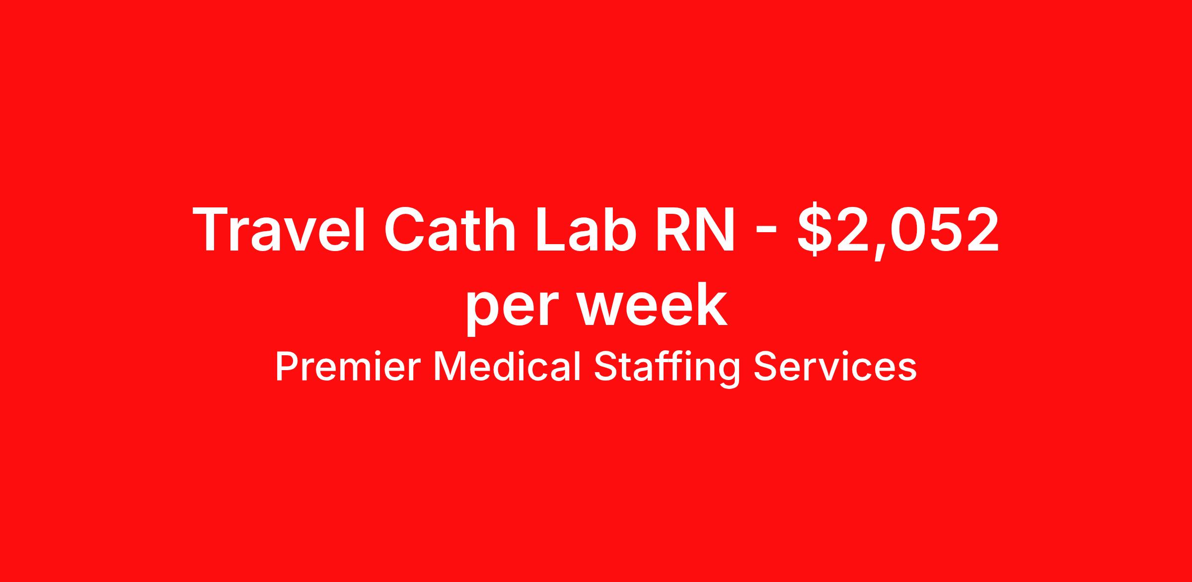 Premier Medical Staffing Services is seeking a travel nurse RN Cardiac Cath Lab for a travel nursing job in Lawton, Oklahoma. Job Description & Requirements Specialty: Cardiac Cath Lab Discipline: RN Start Date: 03/23/2026 Duration: 13 weeks 36 hours per week Shift: 12 hours Employment Type: Travel Premier Medical Staffing Job ID 625760. Pay package is based on 12 hour shifts and 36 hours per week (subject to confirmation) with tax-free stipend amount to be determined. Posted job title: RN Cath Lab About Premier Medical Staffing Services Premier Medical Staffing Services, LLC is a nationally expanding healthcare staffing firm for healthcare professionals and companies. We understand our clients’ need for highly qualified, expertly trained medical professionals and are passionate about helping clinicians find employment opportunities that fit their personality and needs. Able to accommodate the ever-changing needs of the healthcare landscape, we offer per-diem, contract and direct hire placements to support the unique needs of each industry sector. Premier Medical Staffing Services is Joint Commission Certified, a Military Spouse Employment Partner and is certified as a Women’s Business Enterprise. We are proudly nurse owned.