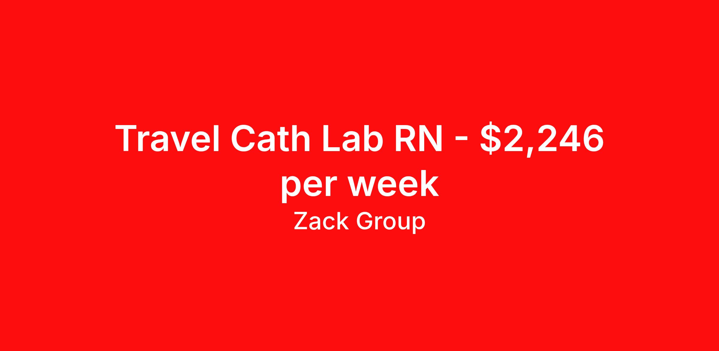 Zack Group is seeking a travel nurse RN Cardiac Cath Lab for a travel nursing job in Lawton, Oklahoma. Job Description & Requirements Specialty: Cardiac Cath Lab Discipline: RN Start Date: 03/23/2026 Duration: 13 weeks 40 hours per week Shift: 8 hours, days Employment Type: Travel Zack Group is currently seeking Cath Lab RN’s for positions in Lawton, Oklahoma. The ideal candidate will possess a current state or equivalent compact license. This is a 5x8 days, 06:00:00-14:00:00, 8.00-5 position in the Cath Lab. Must have an active License in hand and have at least 2 years of recent Cath Lab experience as a RN . Requirements • Current Resume • Active License as an Cath Lab • Current BLS and/or ACLS and/or Specialty Certifications for Cath Lab • 2 current leadership references • Must be able to pass background/urine drug screening Compensation and Benefits We offer: • Highly competitive pay rates • Meals & Housing – Highest non-taxed available • Day 1 Health Benefits package • Weekly Pay • Teladoc, 401k and HRA/HSA • Refer a friend and earn extra cash! At Zack Group, we have your future in mind. It’s our priority! Please call or text us Today! Our Healthcare recruiters are standing by! Opt In: By providing your phone number and engaging with Lynn Care, LLC (also known as Zack Group), its affiliates, and contracted partners—including via text message, phone call, AI-generated call, AI-generated text, or email—you consent to receive communications regarding job opportunities. Message frequency may vary based on your engagement. By texting Zack Group or any associated entity, you agree to our Privacy Policy and Terms of Use ( You can reply STOP to cancel and HELP for help) Zack Group Job ID 36156867. Pay package is based on 8 hour shifts and 40.0 hours per week (subject to confirmation) with tax-free stipend amount to be determined. Posted job title: RN:Cath Lab,06:00:00-14:00:00 About Zack Group Zack Group has been active in the medical staffing sector for over 25 years, providing a wide range of services to top-tier healthcare facilities, including PRN/Per Diem, contract and permanent placement. Through its Traveling Nurse division, Zack Group places certified nursing professionals with healthcare facilities across the United States. Headquartered in Overland Park, KS, Zack Group has additional representation in Topeka and Wichita, Kansas, along with Tulsa, Oklahoma. Our local office partners with facilities throughout the Kansas, Missouri, and Oklahoma region while our travel office handles the whole country. Benefits 401k retirement plan Medical benefits Dental benefits Vision benefits