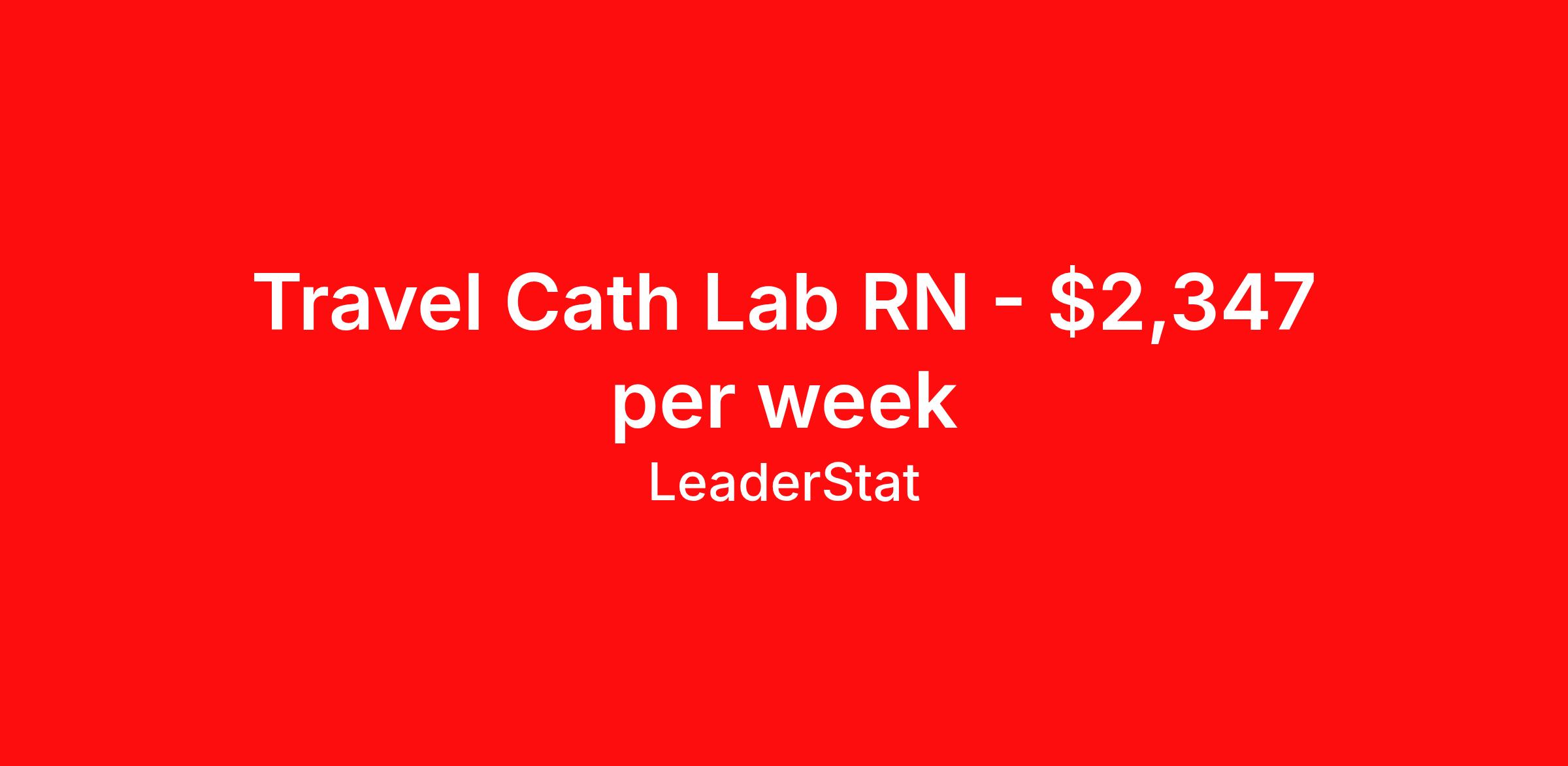 LeaderStat is seeking a travel nurse RN Cardiac Cath Lab for a travel nursing job in Lawton, Oklahoma. Job Description & Requirements Specialty: Cardiac Cath Lab Discipline: RN Start Date: 04/13/2026 Duration: 13 weeks 40 hours per week Shift: 8 hours Employment Type: Travel Estimated Pay Package : Up to $ 2347.20 per week *The above pay package is an estimate, please contact our team to put together your personalized pay package, as a variety of factors can influence your total pay.* Registered Nurse - RN in Lawton, OK LeaderStat is currently seeking a Registered Nurse - RN with experience for a(n) 13 week contract in OK. Start Date: 4/13/2026 End Date: 7/13/2026 Shift: Days, 5x8hr days with on call 7 days a month, not consecutive. Minimum of 18 months experience working as a full-time Registered Nurse Clinical experience within the last 2 years Current State Licensure Current Relevant Certifications (BLS, ACLS, etc) The LeaderStat Difference At LeaderStat, our recruiters are true experts in Travel Nursing. We go above and beyond to match each candidate with the best travel nurse opportunities available. But our commitment doesn’t stop at placement. We’re here to ensure your success every step of the way, providing continuous support throughout your entire contract—from start to finish! Our goal is to find the perfect travel nurse assignments that align with your unique needs and career goals. While you focus on delivering exceptional care to your patients, we’ll take care of everything else, allowing you to thrive in your role. LeaderStat Perks & Benefits As a Traveling Nurse with LeaderStat you receive excellent benefits: Weekly Pay & Direct Deposit W2 Employee Status 401(k) Retirement Plan Medical, Dental and Vision Insurance Referral Bonuses Dedicated Support Team To learn more about LeaderStat visit www.leaderstat.com/travel-nursing Equal Employment Opportunity: LeaderStat, Ltd. prohibits discrimination with respect to the hiring or promotion of individuals, conditions of employment, disciplinary and discharge practices or any other aspect of employment on the basis of sex, race, color, age, national origin, religion, disability, marital status, sexual orientation, gender identity, pregnancy or veteran status. LeaderStat Job ID 297334. Pay package is based on 8 hour shifts and 40 hours per week (subject to confirmation) with tax-free stipend amount to be determined. Posted job title: Catheterization Laboratory - Registered Nurse About LeaderStat LeaderStat is a National staffing, recruiting, and consulting firm dedicated to the healthcare industry. For 20 years, LeaderStat has been dedicated to partnering with exceptional healthcare providers to find them the very best assignments throughout the country. Specializing in Travel Nursing, Interim Leadership, Executive Search, and Consulting. When you work with the LeaderStat team, you work with a recruiter who is dedicated to finding you the perfect assignment. Why would you settle for less? Benefits Referral bonus License and certification reimbursement Medical benefits Holiday Pay Weekly pay 401k retirement plan