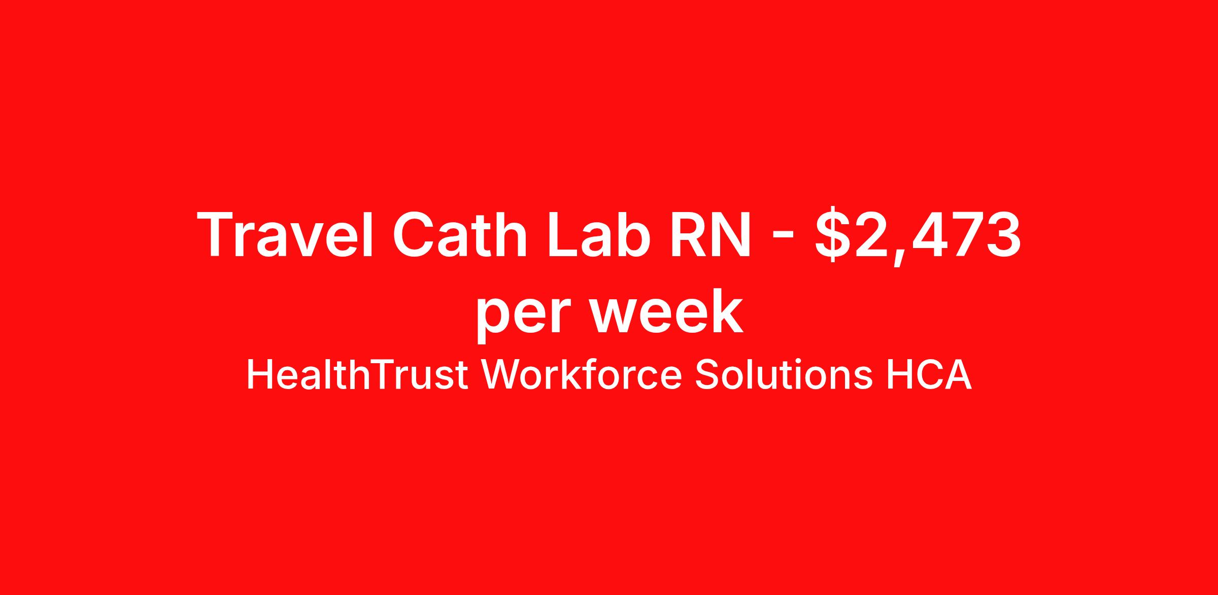 HealthTrust Workforce Solutions HCA is seeking a travel nurse RN Cardiac Cath Lab for a travel nursing job in Englewood, Florida. Job Description & Requirements Specialty: Cardiac Cath Lab Discipline: RN Duration: 13 weeks 36 hours per week Shift: 10 hours, days Employment Type: Travel Entrust Your Career to HealthTrust! At HealthTrust, we believe that healthcare is not defined by the four walls in which it is practiced; it’s defined by its people. We pride ourselves on crafting opportunities that expand skill sets, broaden career horizons, provide economic stability, and cultivate personal growth. HealthTrust Offers: Competitive Pay Packages Guaranteed hours Weekly direct deposit options 401k with Company Match Earn up to $750 for referrals Free Private Furnished Housing or Tax-Free Subsidy To get started, you will need: RN's a minimum of 1 year in specialty Allied 6 months of experience An adventurous spirit and fierce dedication Degree in corresponding specialty as required Appropriate certifications and licensure as needed for the specific position HealthTrust Benefits: Opportunities for a lifetime: When you become a part of the HCA family, you will have exclusive access to more opportunities than any other healthcare system in the nation. At HWS, we help open the door to a lifetime of lasting career opportunities. A culture of care: Our clinicians have made HWS an industry leader for over 25 years. We are passionate about our mission that, above all else, we are committed to the care and improvement of human life. Career Development: As a wholly owned subsidiary of HCA Healthcare, HWS is a preferred partner to thousands of top-performing hospitals. We provide our healthcare professionals with first-priority access to more than 200,000 jobs nationwide. We are uniquely positioned to offer you exclusive and direct access to HCA Healthcare’s vast network of facilities. Let us open the door to nationwide opportunities that fit your lifestyle! We are an equal opportunity employer and value diversity at our company. We do not discriminate on the basis of race, religion, color, national origin, gender, sexual orientation, age, marital status, veteran status, or disability status. Job Requirements Certifications ACLS (Required) BLS (Required) HealthTrust Workforce Solutions HCA Job ID 993667. Posted job title: Travel Nurse - Cath Lab About HealthTrust Workforce Solutions HCA At HealthTrust Workforce Solutions, healthcare is not just about the four walls of a facility but about the people who provide and receive care. Our focus is on empowering healthcare professionals to deliver exceptional patient experiences by providing them with the necessary skills, tools, and support. We partner with healthcare facilities nationwide to ensure that the right professionals are in the right roles. We prioritize our clinicians by giving them a voice and access to opportunities to fulfill their mission of improving lives by providing quality patient care. We are committed to our core values of Trust, Innovation, Adaptability, Courage, and Accountability. We are dedicated to positively impacting the healthcare industry by providing first-priority access to more than 200,000 jobs nationwide to our healthcare professionals. Join us and be part of the HealthTrust family, where you can make a difference every day. We embrace our changing environment, and we maintain a culture that has a rich tradition of transforming itself to meet the challenges of the future. MISSION STATEMENT While putting great people in the right roles is essential, our mission is far greater. We want our clinicians to be part of the HealthTrust family, where healthcare professionals have a voice and are empowered with the right tools and opportunities to fulfill their personal mission of improving lives. Plus, as a preferred partner to thousands of top-performing hospitals, we provide our healthcare professionals with first-priority access to more than 200,000 jobs nationwide. Benefits Dental benefits Vision benefits Referral bonus Continuing Education Life insurance