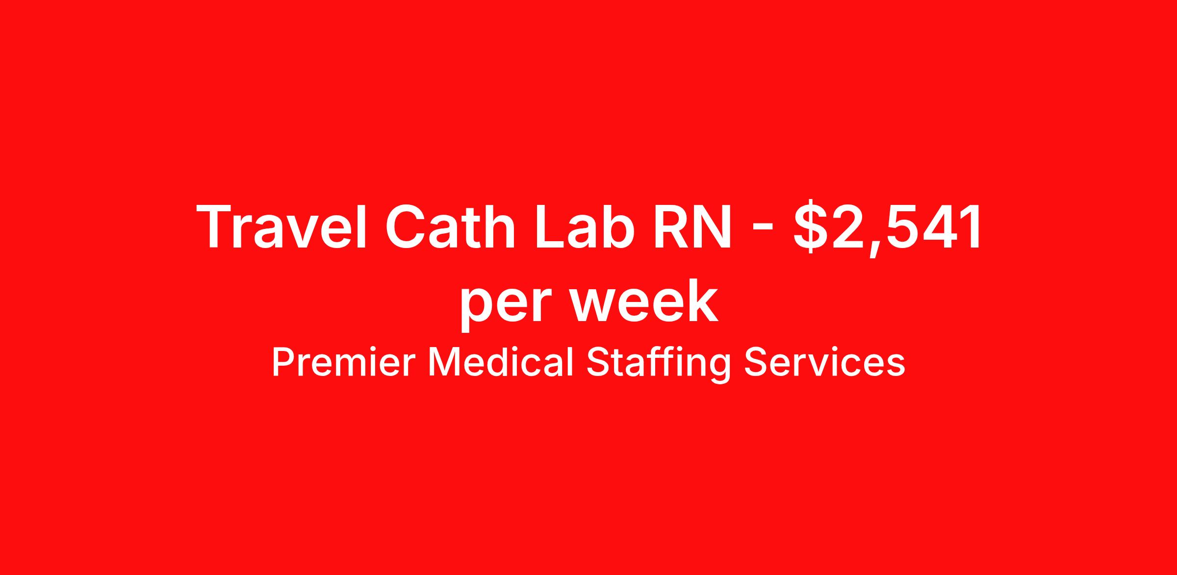 Premier Medical Staffing Services is seeking a travel nurse RN Cardiac Cath Lab for a travel nursing job in Snellville, Georgia. Job Description & Requirements Specialty: Cardiac Cath Lab Discipline: RN Start Date: 03/30/2026 Duration: 14 weeks 40 hours per week Shift: 10 hours Employment Type: Travel Premier Medical Staffing Job ID 626189. Pay package is based on 10 hour shifts and 40 hours per week (subject to confirmation) with tax-free stipend amount to be determined. Posted job title: RN Cath Lab About Premier Medical Staffing Services Premier Medical Staffing Services, LLC is a nationally expanding healthcare staffing firm for healthcare professionals and companies. We understand our clients’ need for highly qualified, expertly trained medical professionals and are passionate about helping clinicians find employment opportunities that fit their personality and needs. Able to accommodate the ever-changing needs of the healthcare landscape, we offer per-diem, contract and direct hire placements to support the unique needs of each industry sector. Premier Medical Staffing Services is Joint Commission Certified, a Military Spouse Employment Partner and is certified as a Women’s Business Enterprise. We are proudly nurse owned.