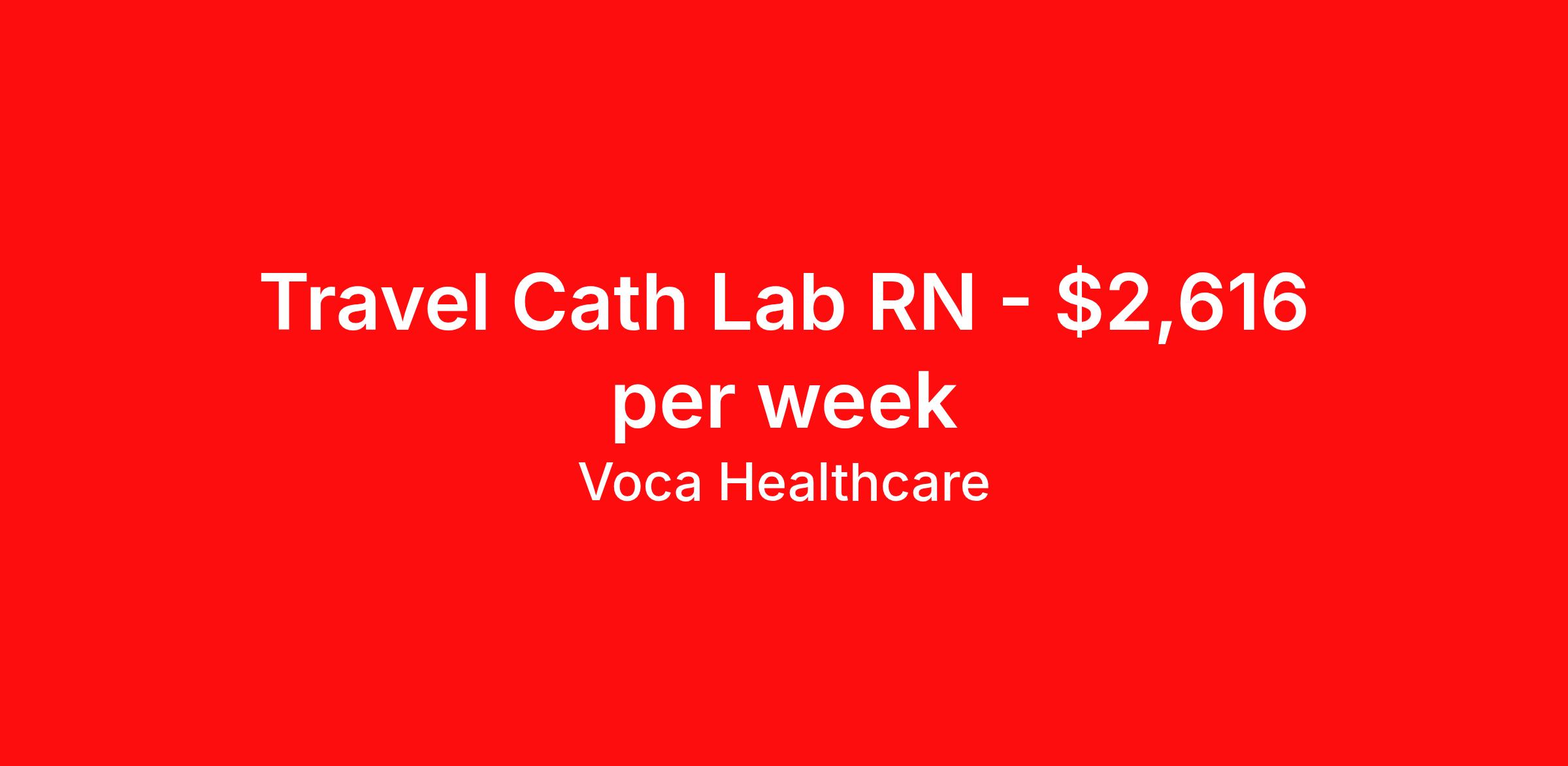 Voca Healthcare is seeking a travel nurse RN Cardiac Cath Lab for a travel nursing job in Snellville, Georgia. Job Description & Requirements Specialty: Cardiac Cath Lab Discipline: RN Start Date: 03/30/2026 Duration: 14 weeks 40 hours per week Shift: 10 hours, days Employment Type: Travel Benefits available on 1st of the month after start: Holiday pay Weekly pay Retention bonus 401k retirement plan Medical benefits Dental benefits Vision benefits Referral bonus Are you an experienced Cardiac Cath Lab RN looking for your next exciting travel assignment, or are you ready to start your travel healthcare career? At Voca, we offer an unmatched experience for healthcare professionals with a travel-first culture that prioritizes your needs and supports your career growth. We understand that every traveler is unique, which is why we provide personalized support from our experienced team of recruiters who are dedicated to matching you with the right assignments. Join Voca today, where you will enjoy a rewarding career and a full suite of benefits designed to ensure your success and well-being. As a Cardiac Cath Lab RN with Voca, you’ll have the opportunity to work in dynamic healthcare settings, gaining valuable experience while receiving competitive compensation and support every step of the way. Qualifications : -Minimum of 2 years of recent experience as a Cardiac Cath Lab RN is preferred, but we are open to exceptional candidates with a strong passion. -Valid certification and/or licensure in the state of practice, if applicable. -Demonstrated ability to maintain a high level of professionalism and composure, especially during stressful and fast-paced moments in the healthcare setting. -Valid Driver’s License and the ability to travel between assignment locations. -Ability to pass a background check and drug screen to meet healthcare industry standards. Why Choose Voca ? -Comprehensive Benefits Package: We offer Health, Dental, and Vision Insurance to ensure that you and your loved ones are well taken care of. -Life and Disability Insurance for added peace of mind. -401(k) options to help you save for your future with employer matching. -Certification and Licensure Reimbursement to support your professional development. -Generous Referral Bonus Program – earn rewards for referring your qualified peers to join the Voca team. -Weekly Direct Deposit ensures timely access to your earnings. At Voca, You Are Our Priority: -Travel-First Culture: We understand that travel assignments offer unique challenges, so we ensure a flexible and supportive work environment that focuses on your success. -Personalized Support: Work with a dedicated recruiter who will be your advocate throughout your journey, helping you navigate each assignment and providing personalized guidance to ensure your goals are met. -Strong Relationships: Voca’s culture fosters long-term relationships with our travelers. -We care about your career, your needs, and your future. Whether you're a seasoned Cardiac Cath Lab RN or ready to take the next step in your travel healthcare career, Voca is the perfect place for you to grow, learn, and thrive. Apply today to connect with one of our talented recruiters and begin your next adventure! Apply Now to get started on your next travel assignment with Voca – where your career and well-being come first! Voca Healthcare Job ID 17986418. Pay package is based on 10 hour shifts and 40.0 hours per week (subject to confirmation) with tax-free stipend amount to be determined. Posted job title: RN:Cardiac Cath Lab,08:00:00-18:00:00 About Voca Healthcare As a Voca Traveler, you will gain new clinical skills, visit amazing places and meet awesome healthcare professionals. As a travel health professional, your experience and dedication to patient care is in high demand throughout the United States. Whether you are a veteran traveler looking for your next opportunity, or you are looking to travel for the first time, Voca is here to support you. Voca’s experienced and dedicated travel team works in concert with you every step of the way. Our long-standing partnerships with some of the most respected and recognized healthcare organizations in the country allow us to identify career opportunities to help you increase your knowledge and experience while working with some of the best physicians and healthcare professionals in the world. At Voca, we strongly believe a better career results in a happier you. We are here to help you find a position that is professionally and personally rewarding. Benefits Holiday Pay 401k retirement plan Medical benefits Dental benefits Vision benefits Guaranteed Hours