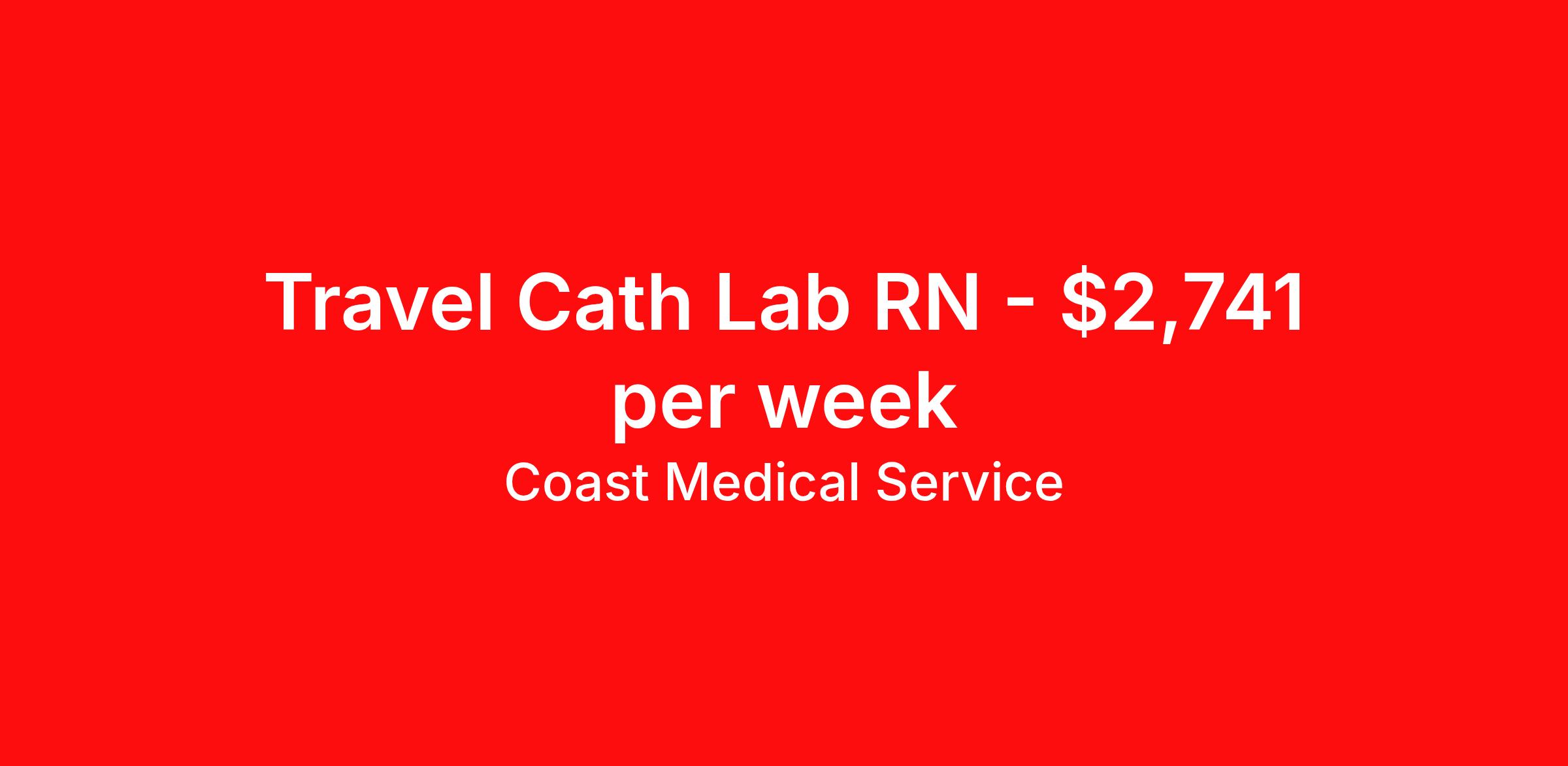 Coast Medical Service is seeking a travel nurse RN Cardiac Cath Lab for a travel nursing job in San Francisco, California. Job Description & Requirements Specialty: Cardiac Cath Lab Discipline: RN Start Date: 04/28/2026 Duration: 25 weeks 36 hours per week Shift: 12 hours, days Employment Type: Travel Coast Medical Service is a nationwide travel nursing & allied healthcare staffing agency dedicated to providing an elite traveler experience for the experienced or first-time traveler. Coast is featured on Blue Pipes' 2023 Best Travel Agencies and named a 2022 Top Rated Healthcare Staffing Firm & 2023 First Half Top Rated Healthcare Staffing Firm by Great Recruiters. Please note that pay rate may differ for locally based candidates. Please apply here or contact a recruiter directly to learn more about this position & the facility, and/or explore others that may be of interest to you. We look forward to speaking with you! Coast Medical Services Job ID 36127169. Pay package is based on 12 hour shifts and 36.0 hours per week (subject to confirmation) with tax-free stipend amount to be determined. Posted job title: RN:Cath Lab,07:00:00-19:30:00