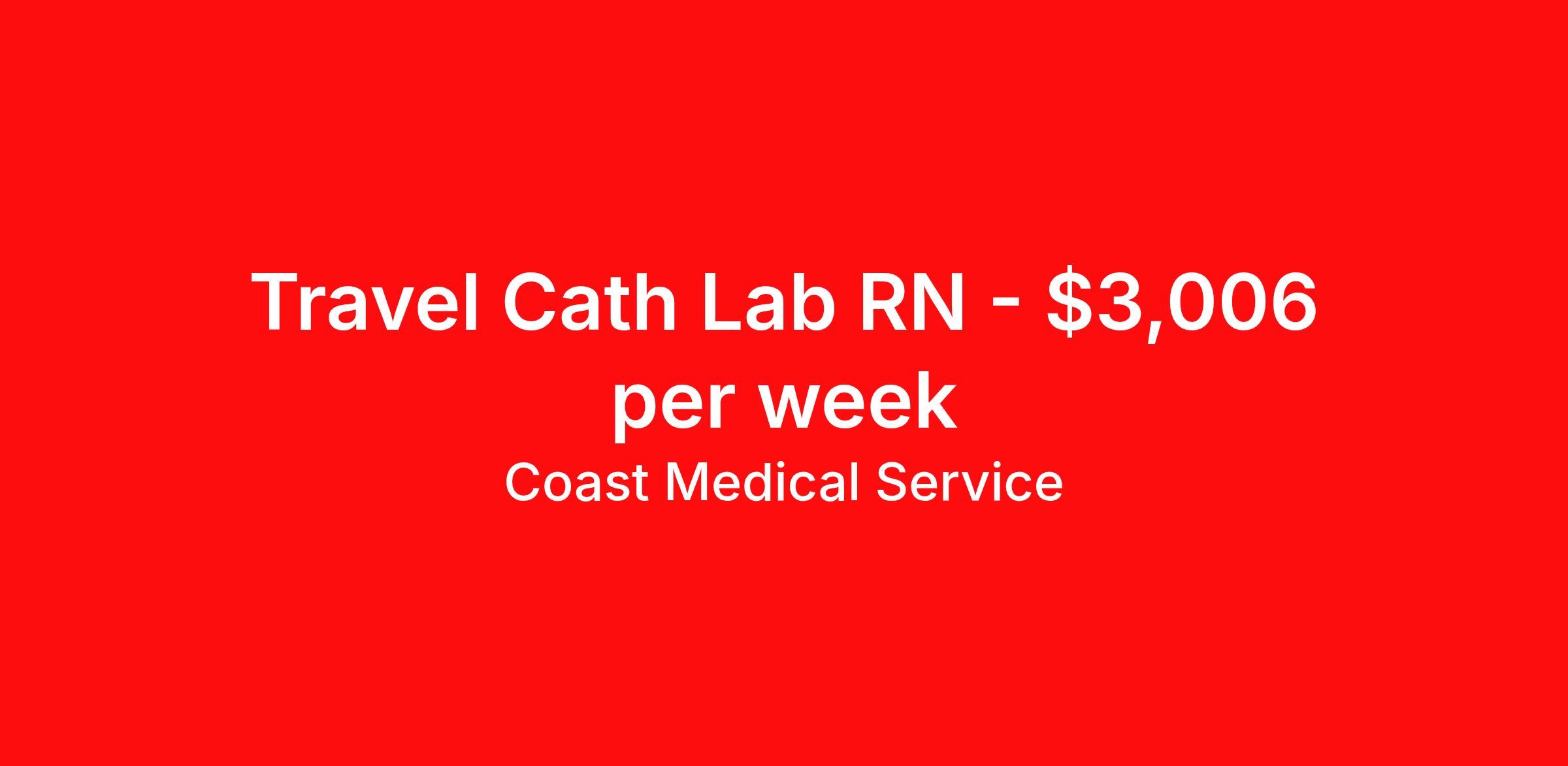 Coast Medical Service is seeking a travel nurse RN Cardiac Cath Lab for a travel nursing job in Billings, Montana. Job Description & Requirements Specialty: Cardiac Cath Lab Discipline: RN Start Date: 04/20/2026 Duration: 13 weeks 40 hours per week Shift: 10 hours, days Employment Type: Travel Coast Medical Service is a nationwide travel nursing & allied healthcare staffing agency dedicated to providing an elite traveler experience for the experienced or first-time traveler. Coast is featured on Blue Pipes' 2023 Best Travel Agencies and named a 2022 Top Rated Healthcare Staffing Firm & 2023 First Half Top Rated Healthcare Staffing Firm by Great Recruiters. Please note that pay rate may differ for locally based candidates. Please apply here or contact a recruiter directly to learn more about this position & the facility, and/or explore others that may be of interest to you. We look forward to speaking with you! Coast Medical Services Job ID 36146755. Pay package is based on 10 hour shifts and 40.0 hours per week (subject to confirmation) with tax-free stipend amount to be determined. Posted job title: RN:Cath Lab,07:00:00-17:00:00