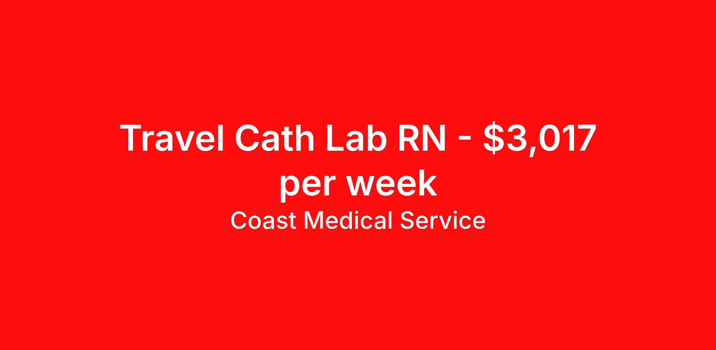 Coast Medical Service is seeking a travel nurse RN Cardiac Cath Lab for a travel nursing job in Porterville, California. Job Description & Requirements Specialty: Cardiac Cath Lab Discipline: RN Start Date: 04/07/2026 Duration: 13 weeks 40 hours per week Shift: 8 hours, days Employment Type: Travel Coast Medical Service is a nationwide travel nursing & allied healthcare staffing agency dedicated to providing an elite traveler experience for the experienced or first-time traveler. Coast is featured on Blue Pipes' 2023 Best Travel Agencies and named a 2022 Top Rated Healthcare Staffing Firm & 2023 First Half Top Rated Healthcare Staffing Firm by Great Recruiters. Please note that pay rate may differ for locally based candidates. Please apply here or contact a recruiter directly to learn more about this position & the facility, and/or explore others that may be of interest to you. We look forward to speaking with you! Coast Medical Services Job ID 35859743. Pay package is based on 8 hour shifts and 40.0 hours per week (subject to confirmation) with tax-free stipend amount to be determined. Posted job title: RN:Cath Lab,07:00:00-15:30:00