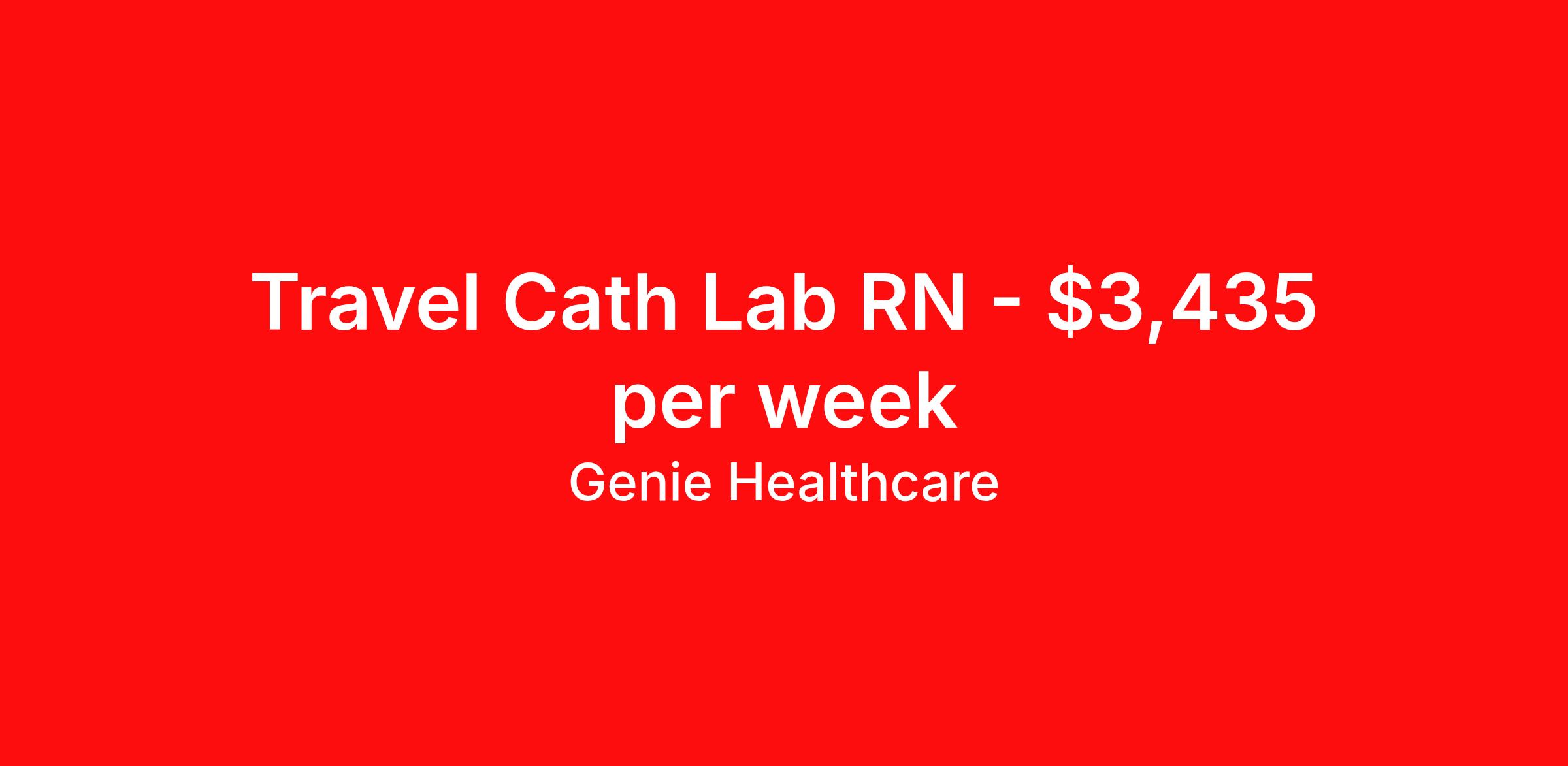 Genie Healthcare is seeking a travel nurse RN Cardiac Cath Lab for a travel nursing job in Lynwood, California. Job Description & Requirements Specialty: Cardiac Cath Lab Discipline: RN Start Date: ASAP Duration: 13 weeks 40 hours per week Shift: 10 hours, days Employment Type: Travel Genie Healthcare is looking for a RN to work in Cath Lab for a 13 weeks travel assignment located in Lynwood, CA for the Shift (4x10 Days-Please verify shift details with recruiter, 07:00:00-17:00:00, 10.00-4). Pay and benefits packages are estimated based on client bill rate at time the job was posted. These rates are subject to change. Exact pay and benefits vary based on several things, including, but not limited to, guaranteed hours, client changes in bill rate, experience, etc. Benefits: Medical Insurance, Dental Insurance, Vision Insurance, 401(k) with company matching (50% up to 6% of what you contribute) Genie Healthcare Job ID 17844399. Pay package is based on 10 hour shifts and 40.0 hours per week (subject to confirmation) with tax-free stipend amount to be determined. Posted job title: RN:Cath Lab,07:00:00-17:00:00 About Genie Healthcare Genie Healthcare is one of the fastest growing Nurse Travel Agencies in the USA. Genie serves hundreds of facilities and has over 4000 current travel RN contracts open at any given time. Genie provides travel RN’s flexibility, support, top pay scale, housing and the 1 rated, multi-state health insurance coverage. Genie Healthcare carries with it a commitment to providing a comprehensive level of service and quality care. Growing from a small team of eager recruiters to a company with satisfied clients in nearly every corner of the nation, delivering excellence in patient and customer care is the key to Genie’s success. The management team has 20 years of experience in workforce solutions and staffing in medical and non-medical fields, roles ranging from Clerical job to Cardiologist to software developer to CEO.