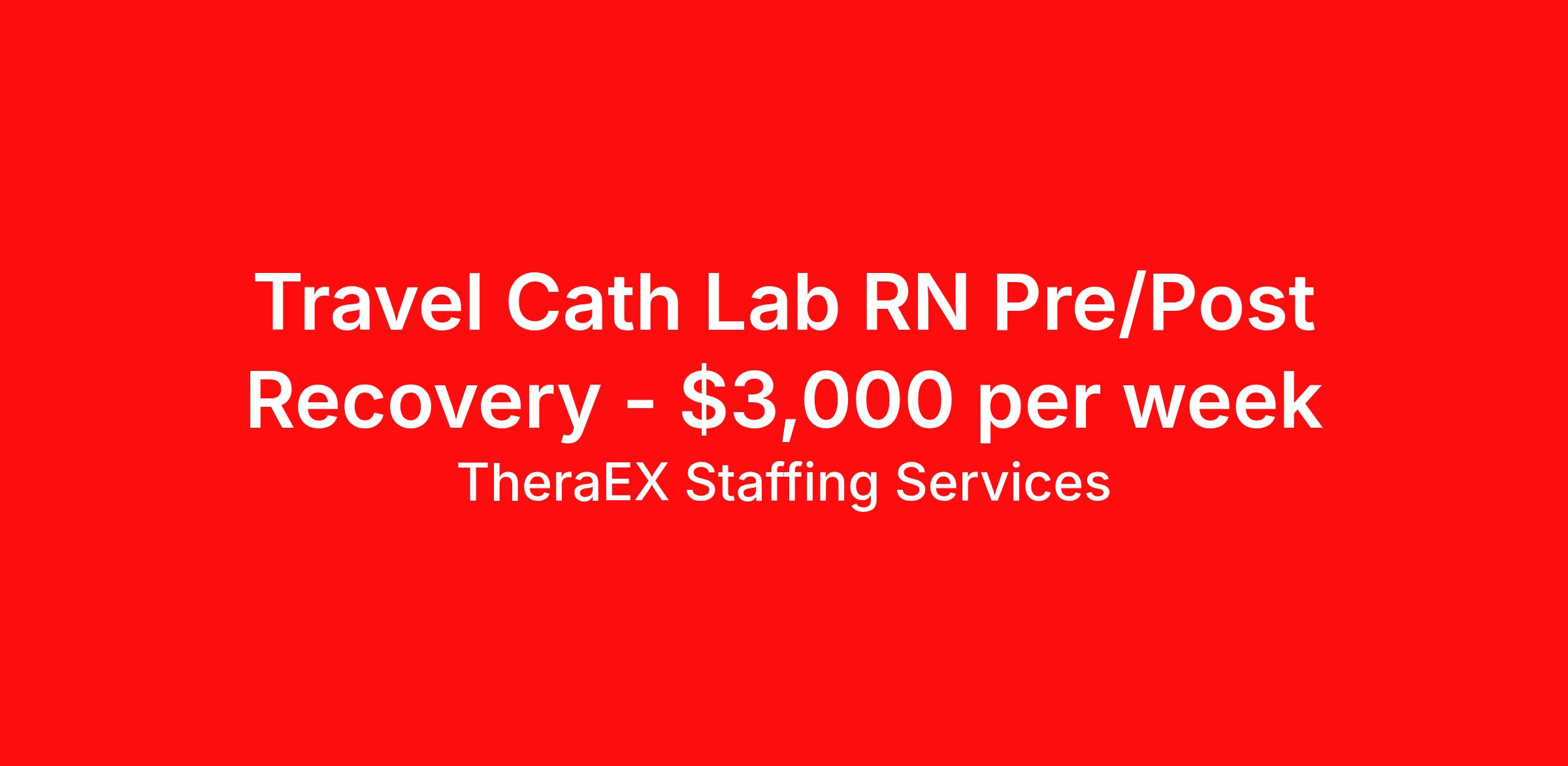 TheraEX Staffing Services is seeking a travel nurse RN Cardiac Cath Lab for a travel nursing job in Silverdale, Washington. Job Description & Requirements Specialty: Cardiac Cath Lab Discipline: RN Start Date: 03/30/2026 Duration: 13 weeks 36 hours per week Shift: 10 hours, days Employment Type: Travel RN – Cath Lab Pre/Post Recovery Days / 2 years Cath Lab, PACU, or Pre/Post recovery experience required / Required certs: BLS, ACLS, NIHSS / 4x10s (11a–9:30p), 40 hrs/week / EPIC & Pyxis / 23 bays (16 beds 7 radial lounge chairs), ~30 cases/day / Pre & post care for cath, PCI, EP, IR & vascular cases / Call required 5–7 days/month (60-min response) / No floating unless emergency / Hospital scrubs provided / Profile review manager interview / Pay negotiable TheraEX Staffing Services Job ID 1067943. Pay package is based on 10 hour shifts and 36 hours per week (subject to confirmation) with tax-free stipend amount to be determined. About TheraEX Staffing Services TheraEx Staffing Services is a leading name in healthcare staffing solutions. We enroll talented professionals to provide temporary staff to fill the needs of healthcare facilities across the nation. Benefits Dental benefits Vision benefits 401k retirement plan Health Care FSA Life insurance Sick pay Holiday Pay Medical benefits