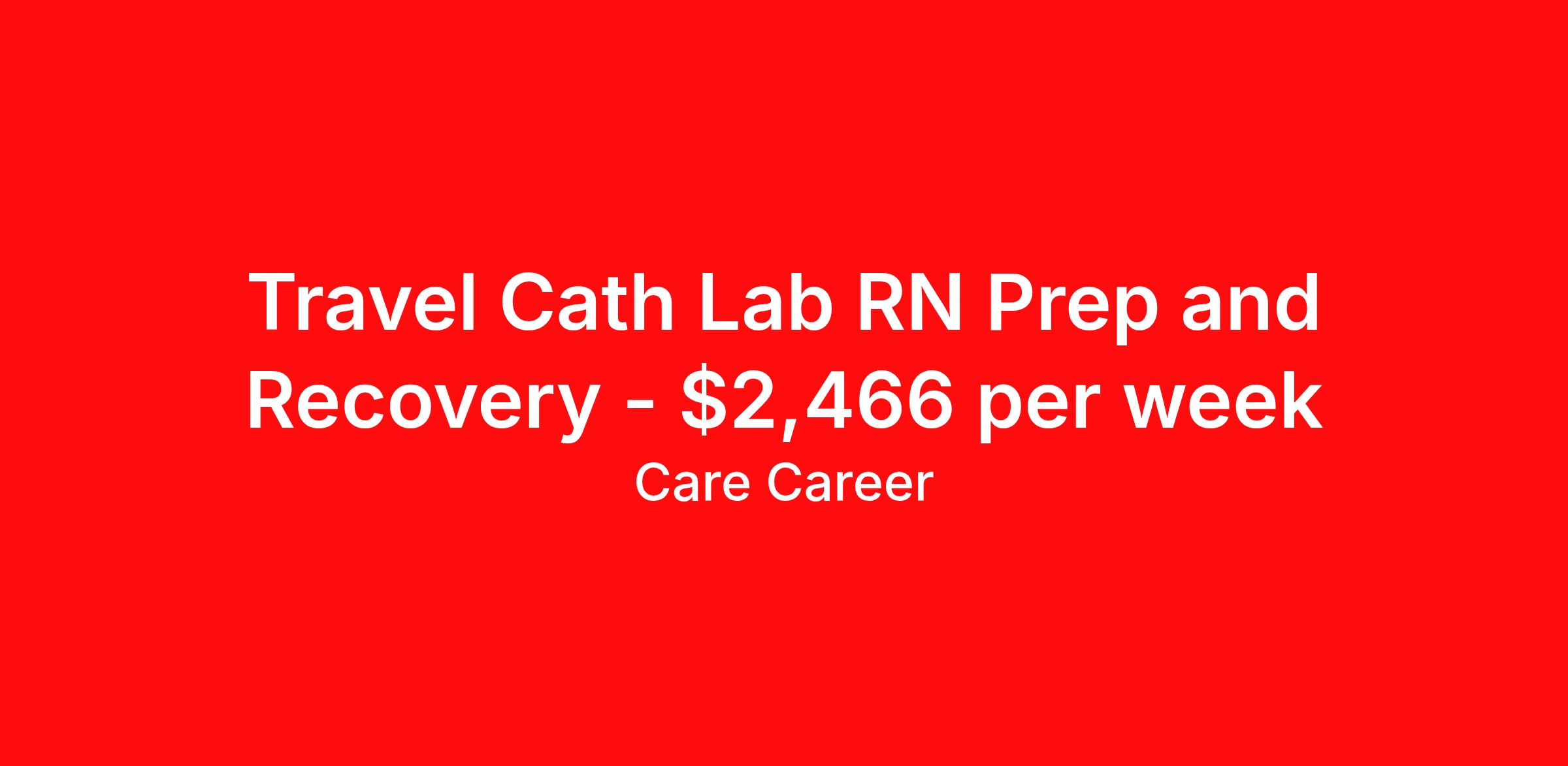 Travel Cath Lab RN Prep and Recovery - $2,466 per week