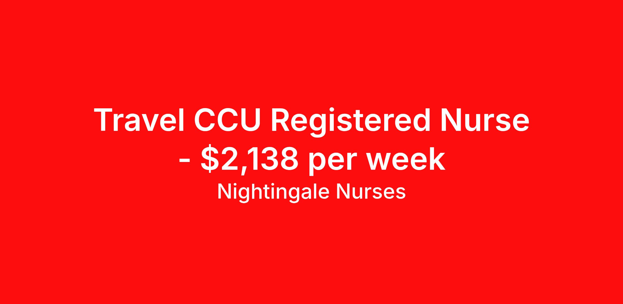 Nightingale Nurses is seeking a travel nurse RN CCU - Coronary Care for a travel nursing job in Philadelphia, Pennsylvania. Job Description & Requirements Specialty: CCU - Coronary Care Discipline: RN Start Date: ASAP Duration: 13 weeks 36 hours per week Shift: 12 hours, days Employment Type: Travel About Nightingale Nurses the first name in travel nursing You may not realize it, but as an RN with real world hospital experience, you are legendary. To the lives you’ve helped save, the patients you’ve cared for, and to the hospitals where you’ve done it. And you’re just getting started. Legendary is where Nightingale begins. We’re the first name in travel nursing, representing only the very best RNs. That’s why hospitals prefer us, allowing us to offer exceptional travel nursing assignments all over the US, as well as the highest pay rates and most extensive benefits in the industry. Nightingale facilitates every aspect of your travel nursing assignment, so you can focus on doing what you do best. We want you to grow, explore, and enjoy unrivaled liberty, the freedom to nurse.