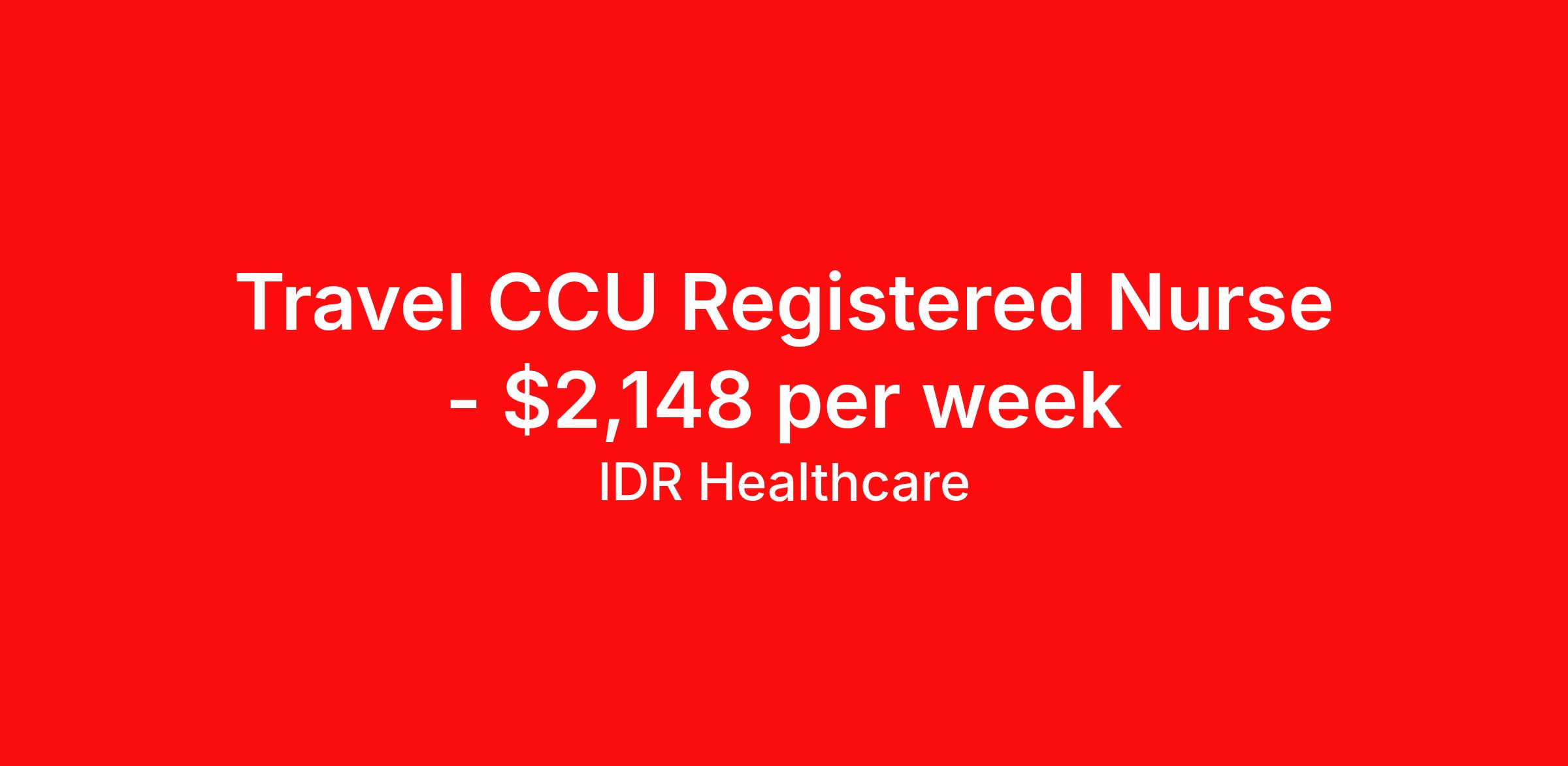 IDR Healthcare is seeking a travel nurse RN CCU - Coronary Care for a travel nursing job in Alexandria, Louisiana. Job Description & Requirements Specialty: CCU - Coronary Care Discipline: RN Start Date: 03/30/2026 Duration: 13 weeks 36 hours per week Shift: 12 hours, nights Employment Type: Travel IDR Healthcare is an awarding winning staffing firm that believes it is a privilege and awesome responsibility to serve those who selflessly care for others. Our mission is to empower healthcare professionals to achieve their fullest potential both personally and professionally while they create positive change within the healthcare community. We exercise true grit, tenacity, and authenticity while embracing and ownership mindset to go above and beyond providing healthcare professionals a world class experience. We are employee owned and our travelers and clinicians earn shares/equity by just completing multiple assignments! We have been named SIA’s Fastest Growing Staffing Firms and have won ClearlyRated® Best of Staffing for 11 consecutive years! This cements our commitment to clinician satisfaction earning top net promoter scores putting us in the top 2% of agencies in North America! TravelFarWithIDR and see what an extraordinary experience is all about! Benefits 2024 World Staffing Best Staffing Firms to Work For! ESOP (Equity) Healthcare Benefits for up to 30 days Between Assignments Comprehensive Health Insurance Dental and Vision Insurance Sign-On, Completion, & Referral Bonus Programs License and Certification Reimbursement Weekly Pay and Competitive Compensation Large Network of Clients and Job Opportunities 401k retirement plan Exclusive Assignments IDR Job ID 497078. Pay package is based on 12 hour shifts and 36 hours per week (subject to confirmation) with tax-free stipend amount to be determined. About IDR Healthcare IDR Healthcare is an awarding winning staffing firm that believes it is a privilege and awesome responsibility to serve those who selflessly care for others. Our mission is to empower healthcare professionals to achieve their fullest potential both personally and professionally while they create positive change within the healthcare community. We exercise true grit, tenacity, and authenticity while embracing and ownership mindset to go above and beyond providing healthcare professionals a world class experience. We are employee owned and our travelers and clinicians earn shares/equity by just completing multiple assignments! We have been named SIA’s Fastest Growing Staffing Firms and have won ClearlyRated® Best of Staffing for 11 consecutive years! This cements our commitment to clinician satisfaction earning top net promoter scores putting us in the top 2% of agencies in North America! Help us give back! For every booked assignment, proceeds are donated to St. Jude and Feeding America! Last year we raised over $18,000 for St. Jude and provided over 49,000 meals for children in need. TravelFarWithIDR and see what it is all about! Benefits Weekly pay 401k retirement plan Referral bonus Medical benefits Dental benefits License and certification reimbursement Vision benefits
