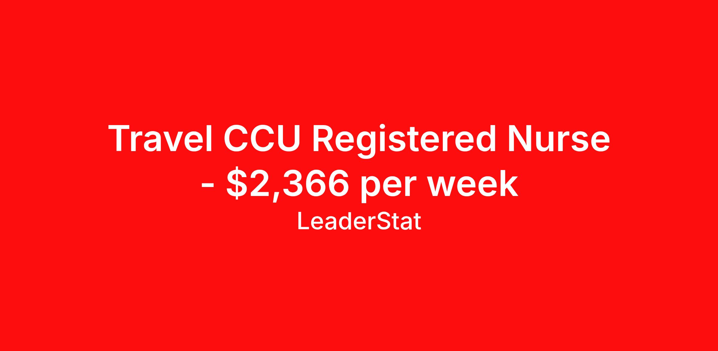 LeaderStat is seeking a travel nurse RN CCU - Coronary Care for a travel nursing job in Des Moines, Iowa. Job Description & Requirements Specialty: CCU - Coronary Care Discipline: RN Start Date: ASAP Duration: 13 weeks 36 hours per week Shift: 12 hours Employment Type: Travel Estimated Pay Package : Up to $ 2366.04 per week *The above pay package is an estimate, please contact our team to put together your personalized pay package, as a variety of factors can influence your total pay.* Registered Nurse - RN ICU | Registered Nurse - RN in Des Moines, IA LeaderStat is currently seeking a Registered Nurse - RN with ICU | Registered Nurse - RN experience for a(n) 13 week contract in IA. Start Date: 1/12/2025 End Date: 4/12/2025 1 year of experience working as a full-time Registered Nurse Clinical experience within the last 2 years Current State Licensure Current Relevant Certifications (BLS, ACLS, etc) The LeaderStat Difference Our LeaderStat recruiters are experts in Travel Nursing! We work hard to find the best travel nurse jobs for each candidate. However, our service doesn’t end at placement. We set you up for success by providing support throughout your contract… from start to finish! Our goal is to find the best travel nurse assignments to fit your individual needs. While you focus on providing top-notch care to your patients, we’ll handle the rest. LeaderStat Perks & Benefits As a Traveling Nurse with LeaderStat you receive excellent benefits: Weekly Pay & Direct Deposit W2 Employee Status 401(k) Retirement Plan Medical, Dental and Vision Insurance Referral Bonuses Dedicated Support Team To learn more about LeaderStat visit www.leaderstat.com/travel-nursing Equal Employment Opportunity: LeaderStat, Ltd. prohibits discrimination with respect to the hiring or promotion of individuals, conditions of employment, disciplinary and discharge practices or any other aspect of employment on the basis of sex, race, color, age, national origin, religion, disability, marital status, sexual orientation, gender identity, pregnancy or veteran status. AcuteTravelers Allied LeaderStat Job ID 232285. Pay package is based on 12 hour shifts and 36 hours per week (subject to confirmation) with tax-free stipend amount to be determined. Posted job title: Critical Care Unit - Registered Nurse About LeaderStat LeaderStat is a National staffing, recruiting, and consulting firm dedicated to the healthcare industry. For 20 years, LeaderStat has been dedicated to partnering with exceptional healthcare providers to find them the very best assignments throughout the country. Specializing in Travel Nursing, Interim Leadership, Executive Search, and Consulting. When you work with the LeaderStat team, you work with a recruiter who is dedicated to finding you the perfect assignment. Why would you settle for less? Benefits Referral bonus License and certification reimbursement Medical benefits Holiday Pay Weekly pay 401k retirement plan