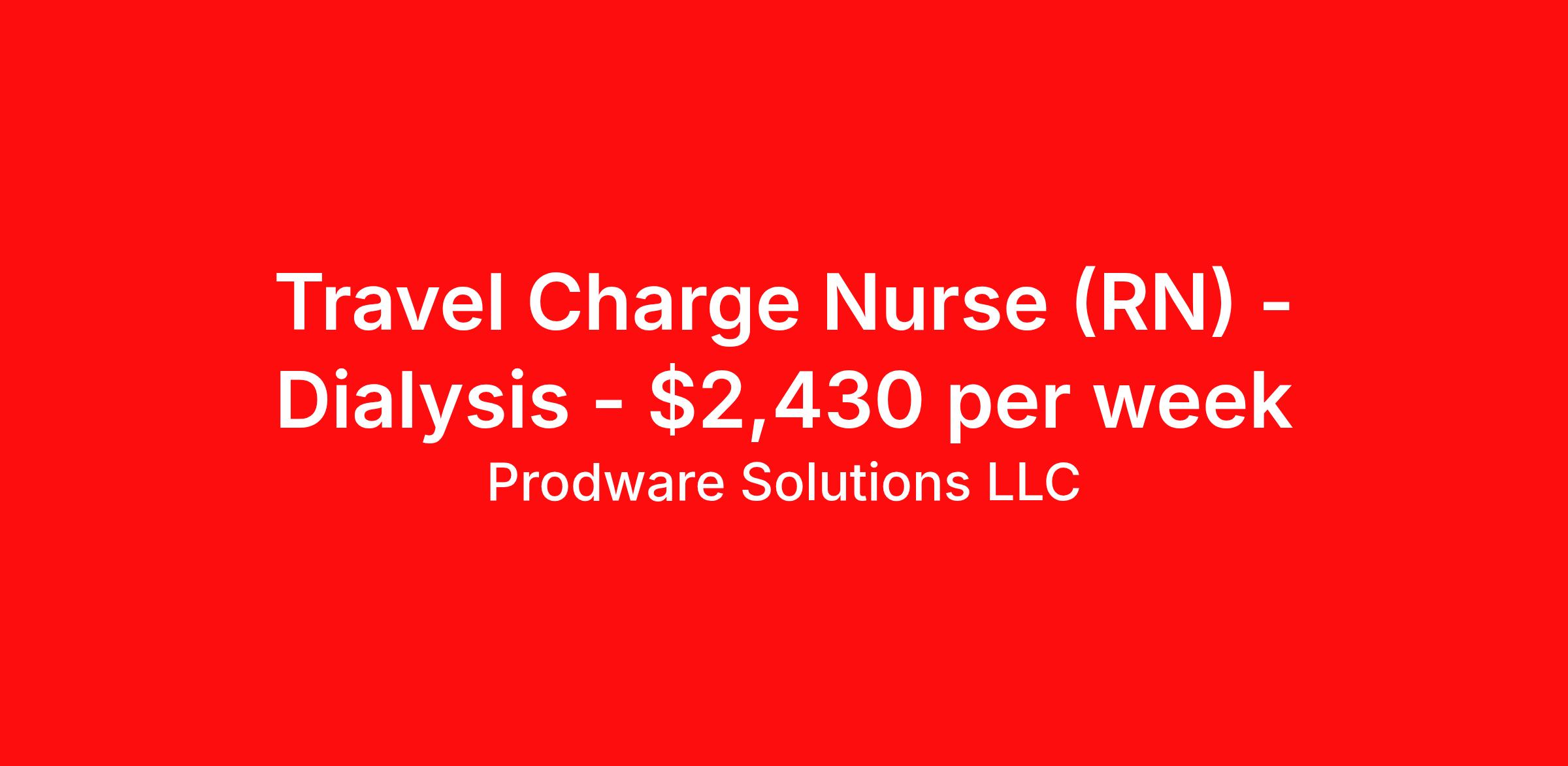 Prodware Solutions LLC is seeking a travel Dialysis Charge Nurse (RN) for a travel nursing job in Rochester, New York. Job Description & Requirements Specialty: Dialysis Discipline: RN Start Date: 03/30/2026 Duration: 13 weeks 40 hours per week Shift: 12 hours, days Employment Type: Travel Facility: Dialysis at Long Pond Location: 1555 Long Pond Rd, Rochester, NY 14626 Unit: Dialysis RN Start Date: 03/23/2026 Duration: 13 Weeks Guaranteed Hours: 40 per week Travel Rate: $27hr $1350wk stipend Schedule Monday – Friday: 5:30 AM – 10:30 PM (8 or 12-hour shifts based on department needs) Weekends: Every Other Weekend 5:30 AM – 10:30 PM (8 or 12-hour shifts) Occasional Sunday coverage due to holidays. Float Required: Yes – All other dialysis locations within system. Required Experience (Hard Stops) Minimum 1 year Dialysis RN experience Charge Nurse / Team Lead experience REQUIRED Chronic Outpatient Dialysis experience REQUIRED Acute Dialysis experience REQUIRED Must be able to run a 4-patient pod independently Experience stringing and setting up Fresenius 2008T machines Required License & Certification Active NY RN License (in hand) BLS Certification Clinical Skills Required Initiate and manage dialysis treatments Cannulation of AV grafts and fistulas Tunneled and non-tunneled catheter management Blood product administration Dialysate conductivity testing Machine alarm troubleshooting (air foam, arterial/venous pressure, conductivity, temperature, ultrafiltration, etc.) Management of dialysis-related complications: Hypotension Hyperkalemia Air emboli Disequilibrium syndrome Hemolysis Clotted access Cardiac arrest/CPR Unit Expectations Charge Nurse for 24-chair outpatient chronic unit when assigned Acute 8-station coverage Blood glucose monitoring Dysrhythmia interpretation Infection control compliance About Prodware Solutions LLC Prodware Solutions LLC is a healthcare staffing agency connecting nurses and allied health professionals with trusted healthcare organizations nationwide. We’re dedicated to matching skilled professionals with rewarding opportunities that make a difference in patient care.