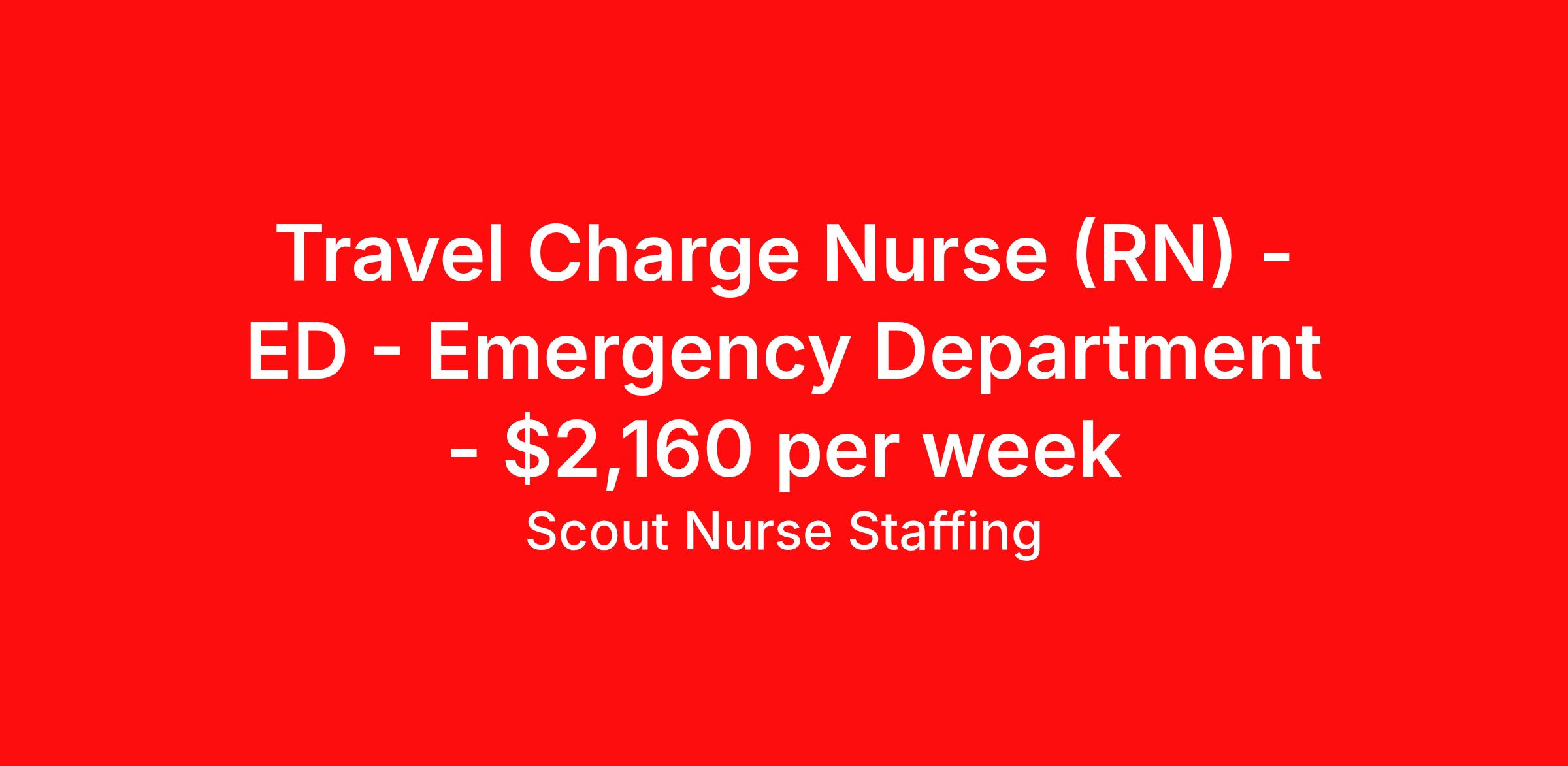 Scout Nurse Staffing is seeking a travel ED - Emergency Department Charge Nurse (RN) for a travel nursing job in Lexington, Nebraska. Job Description & Requirements Specialty: ED - Emergency Department Discipline: RN Start Date: ASAP Duration: 13 weeks 36 hours per week Shift: 12 hours, nights Employment Type: Travel Must have ACLS, BLS, PALS, TNCC with 2 years of recent ER/charging experience. Final pay depends on experience. This is assignment is in Broken Bow, NE Scout Nurse Staffing Job ID 2. Pay package is based on 12 hour shifts and 36 hours per week (subject to confirmation) with tax-free stipend amount to be determined. About Scout Nurse Staffing Scout Nurse Staffing is a physician-owned organization built on integrity, customer service, and quality of care. Benefits Referral bonus