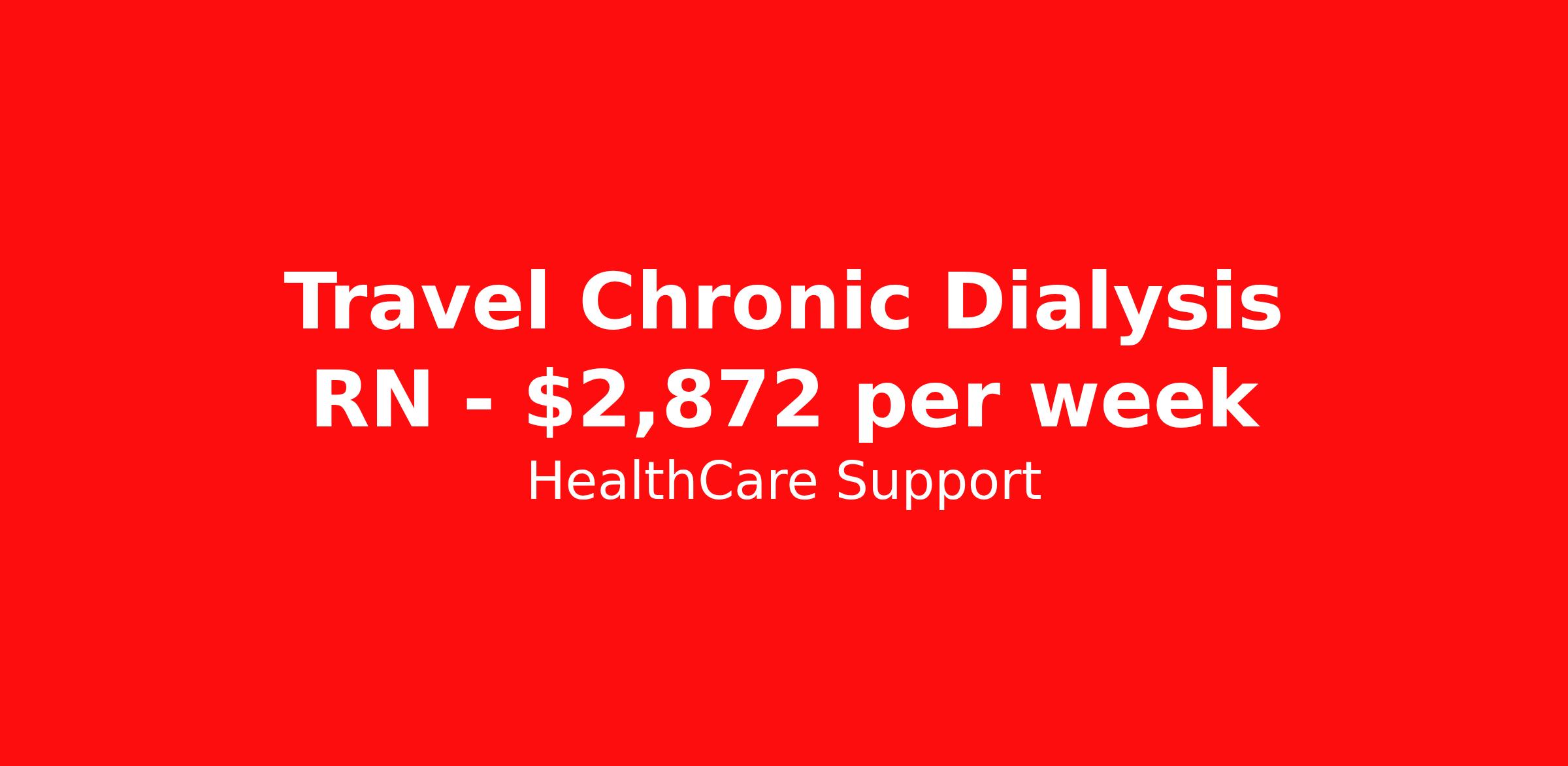 Healthcare Support is seeking a travel nurse RN Dialysis for a travel nursing job in Charlotte, North Carolina. Job Description & Requirements Specialty: Dialysis Discipline: RN Start Date: 03/30/2026 Duration: 50 weeks 36 hours per week Shift: 12 hours Employment Type: Travel Now Hiring: Travel Nurse Educator – Dialysis (5008X Trainer) Nationwide Travel | 36 hrs/week | Paid Training Included 50-Week Contract | No Direct Patient Care | RN Role Be part of a groundbreaking national project! We're seeking experienced Dialysis RNs to join a high-impact team rolling out the cutting-edge 5008X dialysis machine in clinics across the U.S. Your Role As a Travel Nurse Educator, you'll: Deliver hands-on training to clinic staff (RNs, LPNs, Techs) on the 5008X machine Travel in 3-week deployment cycles to different clinics nationwide Provide on-site support during live treatments (no direct patient care) Promote safe and effective machine use through collaboration and coaching What You’ll Get 50-week renewable contract – extensions likely! Full paid training (first 6 weeks) Dedicated recruiter to support you throughout your journey Schedules released 2 months in advance – plan with confidence What You’ll Need Active RN license (multi-state highly preferred) 1 year of dialysis RN experience (minimum 1 year in the past 3 years) Current BLS certification Willingness to travel full-time and lead hands-on training Compensation Weeks 1–6 (Training Period) $54/hour, travel stipends included if currently traveling. Varies by location EXAMPLE Pay Package Week 7 and Beyond (Travel Assignments Pay Varies By Location) Taxable Weekly Pay: $1,089 (W2) Non-Taxable Weekly Stipends: $1,869 Total Weekly Pay: $2,958 Healthcare Support Job ID 485758. Pay package is based on 12 hour shifts and 36 hours per week (subject to confirmation) with tax-free stipend amount to be determined. Posted job title: rn chronic dialysis About Healthcare Support Healthcare Support excels at providing a streamlined and red-carpet experience for our travelers. Whether you are a nurse, a therapist, or an allied health professional, our goal is to connect you with top-rated facilities throughout the country and get you on the road to your next adventure. We leverage 20 years of relationships with the industry’s most respectable companies across all 50 states, both through direct client partnerships and via national MSP programs. From health systems and hospitals to specialty clinics and post-acute facilities, you can work where you want to work and go where you want to go. Not only does HealthCare Support reimburse for relocation and travel costs on your first check, but we also offer license and certification reimbursements required for your assignments so that you can focus on building your career. During your assignment, you’ll have access to medical benefits, 24/7 support from our Clinical Advocacy Team, and a travel team with stateside operations. Your travel team will include a designated credentialing expert to help you navigate every step of the on-boarding process, a payroll specialist who you can communicate with directly, and a skilled recruiter who takes the time to understand your needs and works hard to find the right position for you. Don’t get lost in the shuffle of another overblown staffing agency. Choose HealthCare Support to be your trusted partner that you can rely on for all your travel assignments. We can’t wait to hear about the amazing adventures you’ll have! Pst! Ask us about our Direct Hire Opportunities! Benefits License and certification reimbursement Medical benefits Dental benefits Mileage reimbursement Employee assistance programs Referral bonus 401k retirement plan Holiday Pay Weekly pay
