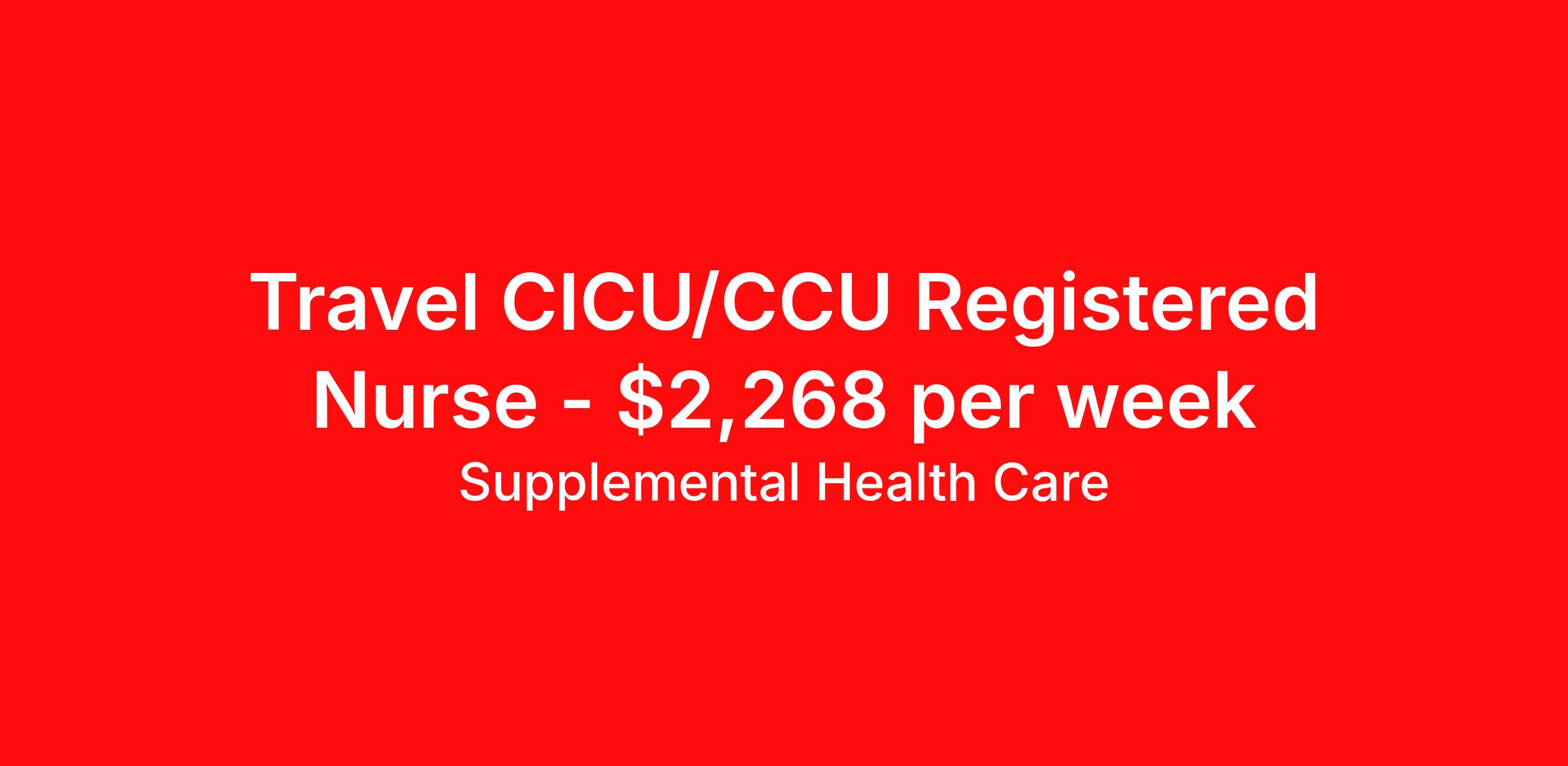 Supplemental Health Care is seeking a travel nurse RN CVICU for a travel nursing job in Lebanon, New Hampshire. Job Description & Requirements Specialty: CVICU Discipline: RN Start Date: ASAP Duration: 13 weeks 36 hours per week Shift: 12 hours, days, nights Employment Type: Travel Job Description: Supplemental Health Care is connecting CICU, ICU/CCU Registered Nurses with top-tier hospital contracts in Lebanon, New Hampshire. Travel or stay local, either way, we’ll guide you to an opportunity that matches your goals, offering excellent pay, benefits, and support. Qualifications: Current New Hampshire Registered Nurse License / Certification American Heart Association BLS 1 to 2 years of recent CICU, ICU/CCU experience CICU, ICU/CCU Registered Nurse Contract Details: $2,052 - $2,268 per week* Weekly pay 13-week contract with possibility to extend AM shifts available *Estimated weekly payment may include both taxable wages and tax-free reimbursements for meals, housing, and incidentals. Please speak with a recruiter for details. What We Offer: Full medical, dental, vision, life, and even pet insurance! Round the clock support. No matter where you are or what time it is, Supplemental Health Care is standing by. SHC's Share the Care referral program is the most dynamic, profitable referral program in the industry. 401(k) Retirement Savings Program with a wide range of investment options. Discounted and free online access to CEU courses through Supplemental University. Apply now to launch your next CICU, ICU/CCU Registered Nurse assignment, or ask our team about other exciting Registered Nurse opportunities. Supplemental Health Care is an Equal Opportunity Employer. All candidates, including veterans and those with disabilities, are encouraged to apply. SHC will consider for employment qualified applicants with criminal histories in a manner consistent with the requirements of applicable local, state, or federal law. To learn more, visit www.shccares.com/eeo Supplemental Health Care Job ID 1468193. Pay package is based on 12 hour shifts and 36 hours per week (subject to confirmation) with tax-free stipend amount to be determined. Posted job title: CICU, ICU/CCU Registered Nurse About Supplemental Health Care At Supplemental Health Care, a simple belief in the power of caring guides a unique commitment to world-class service in healthcare staffing. For 40 years, we’ve supported talented professionals pursuing their life calling in hospitals, schools, home health, corrections, behavioral health, and other settings. At SHC, we inspire vital connections and enrich lives and inspire better outcomes. As recipients of the Best in Staffing Awards for both Client and Talent, Supplemental Health Care is proud to be among only 2% of staffing companies singled out for the distinction based on the real feedback of our employees and the clients we serve. SHC has also earned The Joint Commission’s Gold Seal of Approval and is named among the Largest Health Care Staffing companies in the United States by Staffing Industry Analysts. We are also thrilled to recognize our very own SLP, Dr. Kelly Byrd as the American Staffing Association 2024 National Staffing Employee of the Year and Health Care Sector All-Star. We’re honored to connect Dr. Byrd to employment, share her incredible story, and support her family literacy nonprofit. For everyone that we serve, SHC is the place where caring hearts thrive. Benefits Referral bonus Benefits start day 1 401k retirement plan Continuing Education Discount program Health savings account