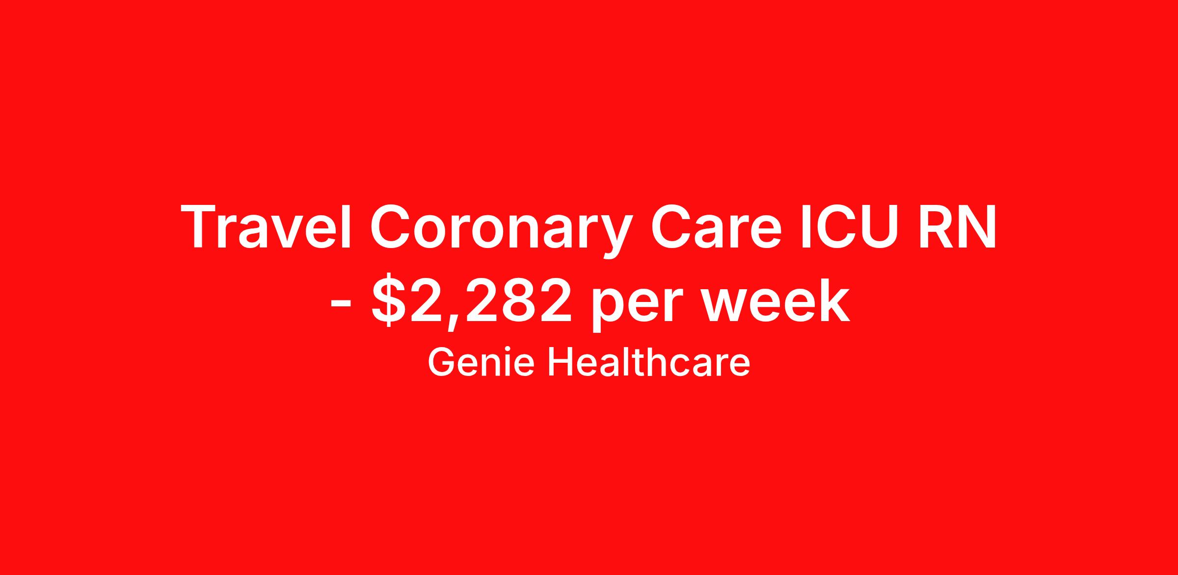 Genie Healthcare is seeking a travel nurse RN CCU - Coronary Care for a travel nursing job in Phoenix, Arizona. Job Description & Requirements Specialty: CCU - Coronary Care Discipline: RN Start Date: 04/07/2026 Duration: 13 weeks 36 hours per week Shift: 12 hours, days Employment Type: Travel Years of Experience 2 Years Required Certifications ACLS, BLS Certification 12hr days, 4 total weekend shifts per 4 weeks, holidays based on unit coverage LEVEL 1 TRAUMA WAIVED WILL CONSIDER ICU RN WITH CARDIAC PATIENT EXPERIENCE - DOESN'T HAVE TO BE FROM A CVICU FLOOR No locals 50 mile radius must pass dysrhythmia exam prior to acceptance, traveler has 2 attempts. if failed, RN will be DNU within CS AZ and Sac Region for 6 months *Travel Teams must have their own vehicles *must have natural hair color and no facial piercings *men must clean shave for fit test *pass fail exam on day 1 of orientation - details to follow Years of Experience 2 Years Required Certifications ACLS, BLS Certification 12hr days, 4 total weekend shifts per 4 weeks, holidays based on unit coverage LEVEL 1 TRAUMA WAIVED WILL CONSIDER ICU RN WITH CARDIAC PATIENT EXPERIENCE - DOESN'T HAVE TO BE FROM A CVICU FLOOR No locals 50 mile radius must pass dysrhythmia exam prior to acceptance, traveler has 2 attempts. if failed, RN will be DNU within CS AZ and Sac Region for 6 months *Travel Teams must have their own vehicles *must have natural hair color and no facial piercings *men must clean shave for fit test *pass fail exam on day 1 of orientation - details to follow About Genie Healthcare Genie Healthcare is one of the fastest growing Nurse Travel Agencies in the USA. Genie serves hundreds of facilities and has over 4000 current travel RN contracts open at any given time. Genie provides travel RN’s flexibility, support, top pay scale, housing and the 1 rated, multi-state health insurance coverage. Genie Healthcare carries with it a commitment to providing a comprehensive level of service and quality care. Growing from a small team of eager recruiters to a company with satisfied clients in nearly every corner of the nation, delivering excellence in patient and customer care is the key to Genie’s success. The management team has 20 years of experience in workforce solutions and staffing in medical and non-medical fields, roles ranging from Clerical job to Cardiologist to software developer to CEO.