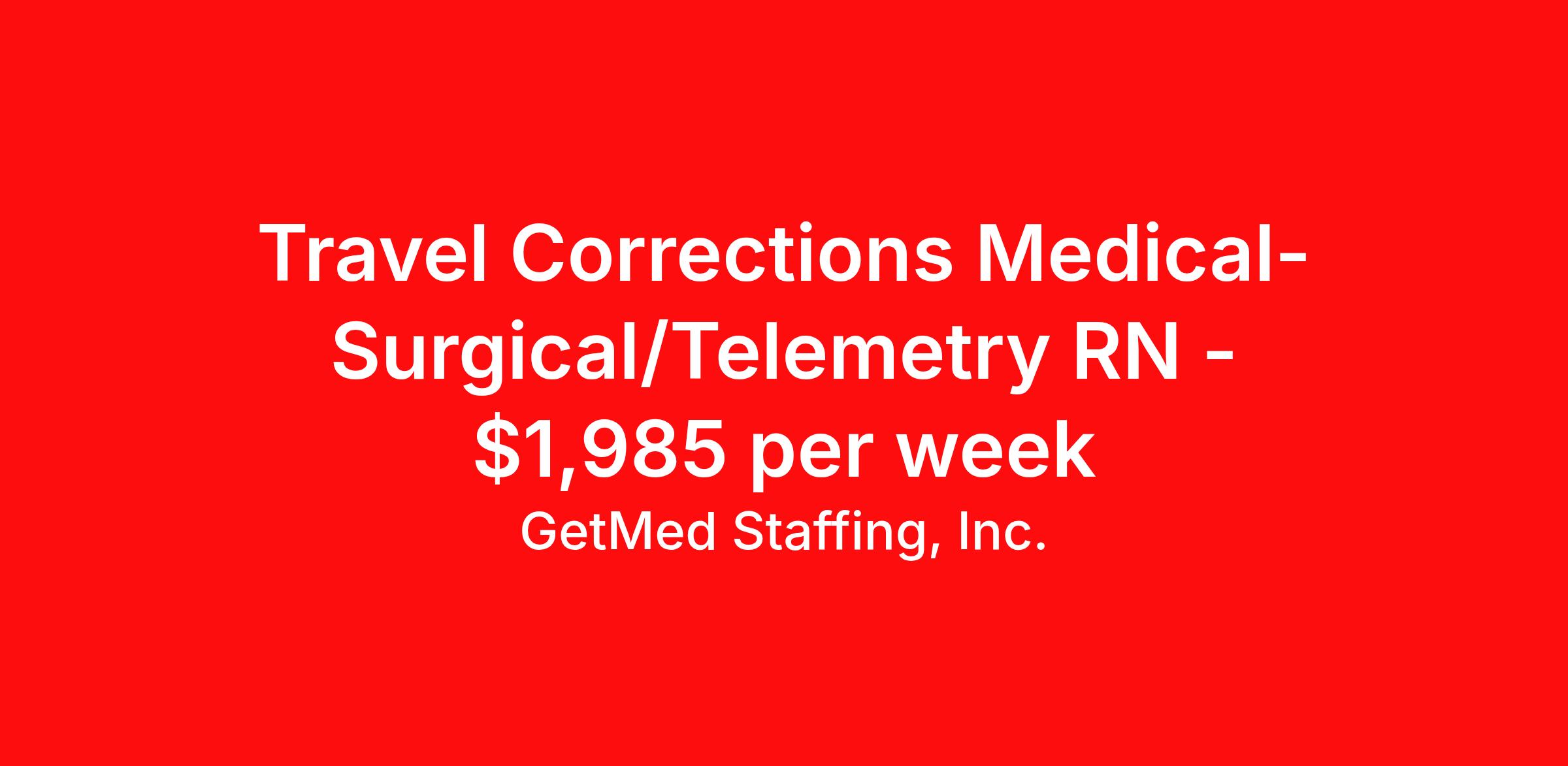 GetMed Staffing, Inc. is seeking a travel nurse RN Telemetry for a travel nursing job in Columbus, Ohio. Job Description & Requirements Specialty: Telemetry Discipline: RN Start Date: 04/20/2026 Duration: 16 weeks 36 hours per week Shift: 12 hours, nights Employment Type: Travel GetMed Staffing is searching for a strong Telemetry RN to assist our traveler-friendly client. A minimum of 1-2 years of experience is required. Traveling with GetMed Staffing offers the unique opportunity to gain diverse experiences, both personally and professionally. Gain experience that matters. GetMed Staffing, Inc. Job ID 36156017. Pay package is based on 12 hour shifts and 36.0 hours per week (subject to confirmation) with tax-free stipend amount to be determined. Posted job title: RN:Telemetry,19:00:00-07:00:00 About GetMed Staffing, Inc. We are a diversity owned company, specializing in healthcare recruiting services. We truly understand how important a healthcare travelers' relationship is with their recruiter, as well as our relationship is with our healthcare facilities. We recognize that the needs of our healthcare travelers can vary, and therefore we provide the personalized touch necessary to ensure a successful travel assignment each and every time. Our healthcare facilities and clients benefit from us putting our healthcare travelers first. GetMed Staffing is excited to be a leader within the industry by focusing on providing healthcare travelers with more choices and possibilities as they plan for their next healthcare travel assignment. Benefits Life insurance Medical benefits Dental benefits Vision benefits 401k retirement plan