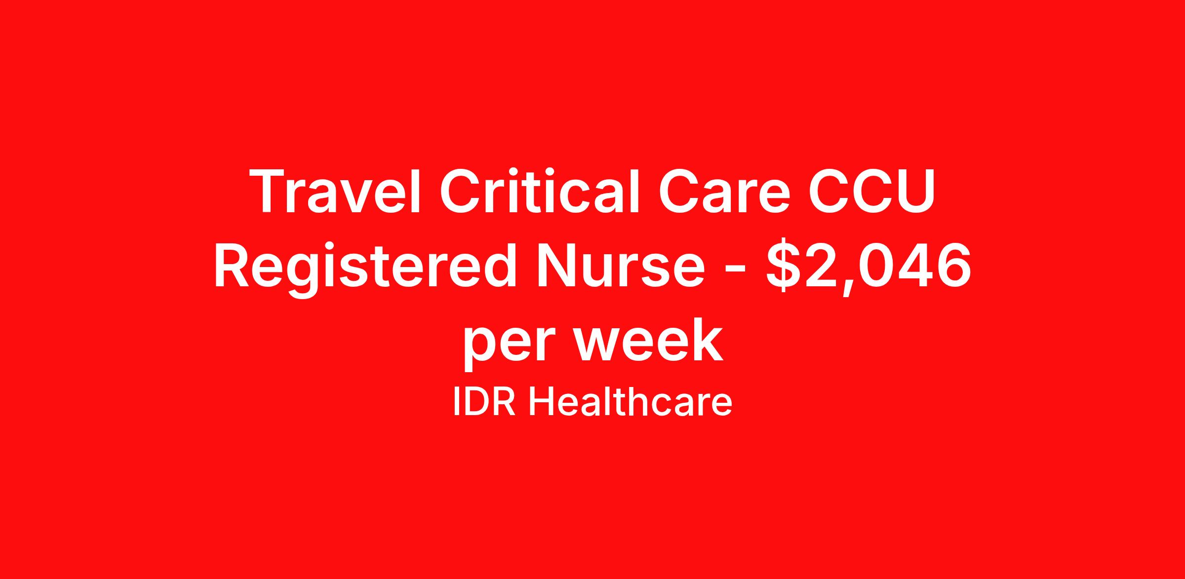 Travel Critical Care CCU Registered Nurse - $2,046 per week