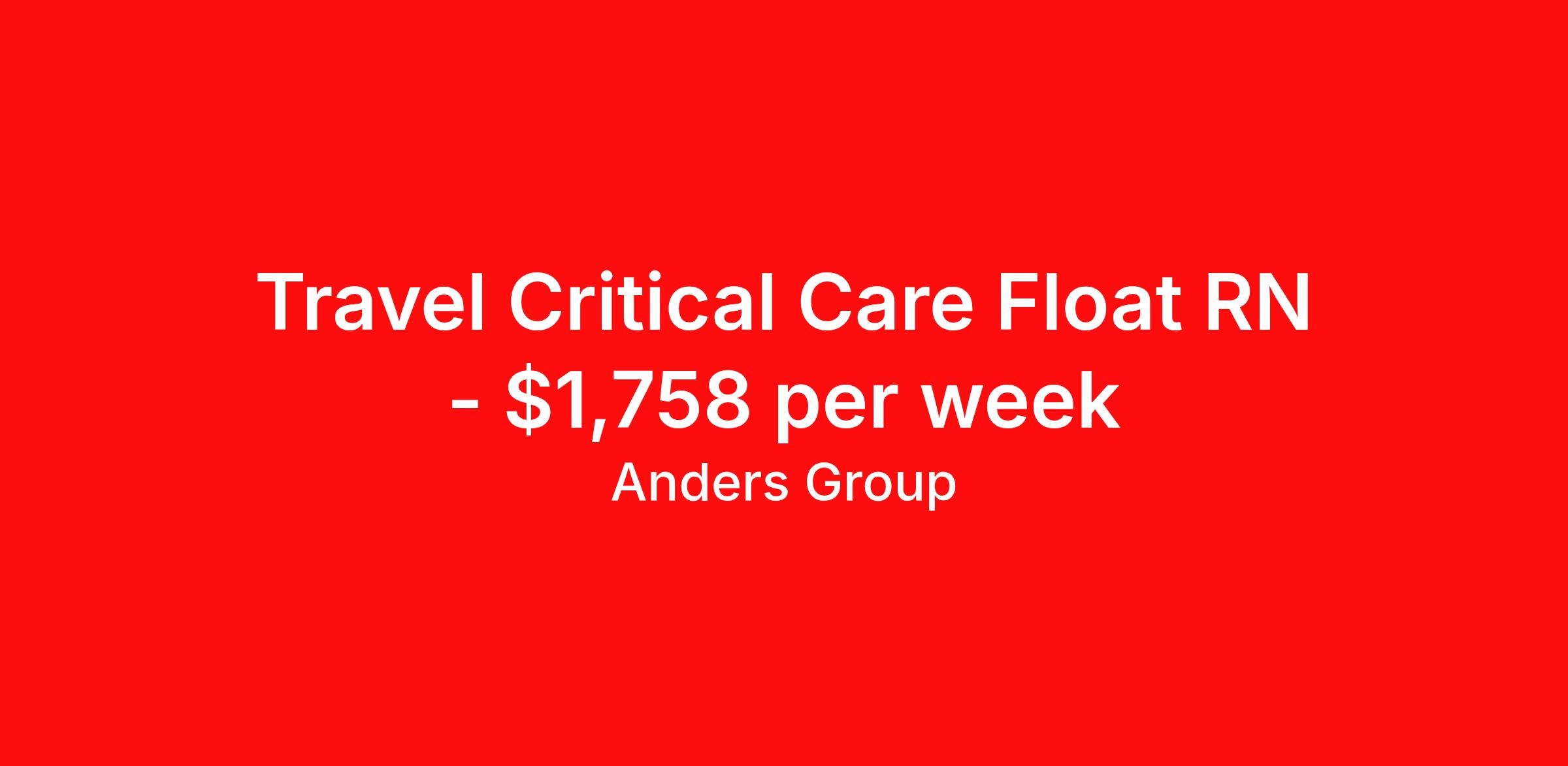 Travel Critical Care Float RN - $1,758 per week