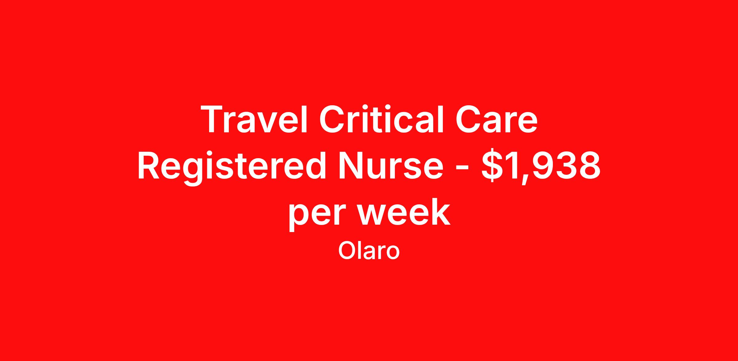 Travel Critical Care Registered Nurse - $1,938 per week