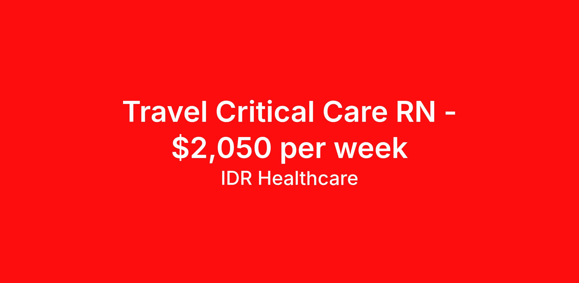 IDR Healthcare is seeking a travel nurse RN ICU - Intensive Care Unit for a travel nursing job in Cleveland, Ohio. Job Description & Requirements Specialty: ICU - Intensive Care Unit Discipline: RN Start Date: ASAP Duration: 13 weeks 36 hours per week Shift: 12 hours, days Employment Type: Travel IDR Healthcare is an awarding winning staffing firm that believes it is a privilege and awesome responsibility to serve those who selflessly care for others. Our mission is to empower healthcare professionals to achieve their fullest potential both personally and professionally while they create positive change within the healthcare community. We exercise true grit, tenacity, and authenticity while embracing and ownership mindset to go above and beyond providing healthcare professionals a world class experience. We are employee owned and our travelers and clinicians earn shares/equity by just completing multiple assignments! We have been named SIA’s Fastest Growing Staffing Firms and have won ClearlyRated® Best of Staffing for 11 consecutive years! This cements our commitment to clinician satisfaction earning top net promoter scores putting us in the top 2% of agencies in North America! TravelFarWithIDR and see what an extraordinary experience is all about! Benefits 2024 World Staffing Best Staffing Firms to Work For! ESOP (Equity) Healthcare Benefits for up to 30 days Between Assignments. Comprehensive Health Insurance Dental and Vision Insurance Sign-On, Completion, & Referral Bonus Programs License and Certification Reimbursement Weekly Pay and Competitive Compensation Large Network of Clients and Job Opportunities 401k retirement plan Exclusive Assignments IDR Job ID 420321. Pay package is based on 12 hour shifts and 36 hours per week (subject to confirmation) with tax-free stipend amount to be determined. About IDR Healthcare IDR Healthcare is an awarding winning staffing firm that believes it is a privilege and awesome responsibility to serve those who selflessly care for others. Our mission is to empower healthcare professionals to achieve their fullest potential both personally and professionally while they create positive change within the healthcare community. We exercise true grit, tenacity, and authenticity while embracing and ownership mindset to go above and beyond providing healthcare professionals a world class experience. We are employee owned and our travelers and clinicians earn shares/equity by just completing multiple assignments! We have been named SIA’s Fastest Growing Staffing Firms and have won ClearlyRated® Best of Staffing for 11 consecutive years! This cements our commitment to clinician satisfaction earning top net promoter scores putting us in the top 2% of agencies in North America! Help us give back! For every booked assignment, proceeds are donated to St. Jude and Feeding America! Last year we raised over $18,000 for St. Jude and provided over 49,000 meals for children in need. TravelFarWithIDR and see what it is all about! Benefits Weekly pay 401k retirement plan Referral bonus Medical benefits Dental benefits License and certification reimbursement Vision benefits