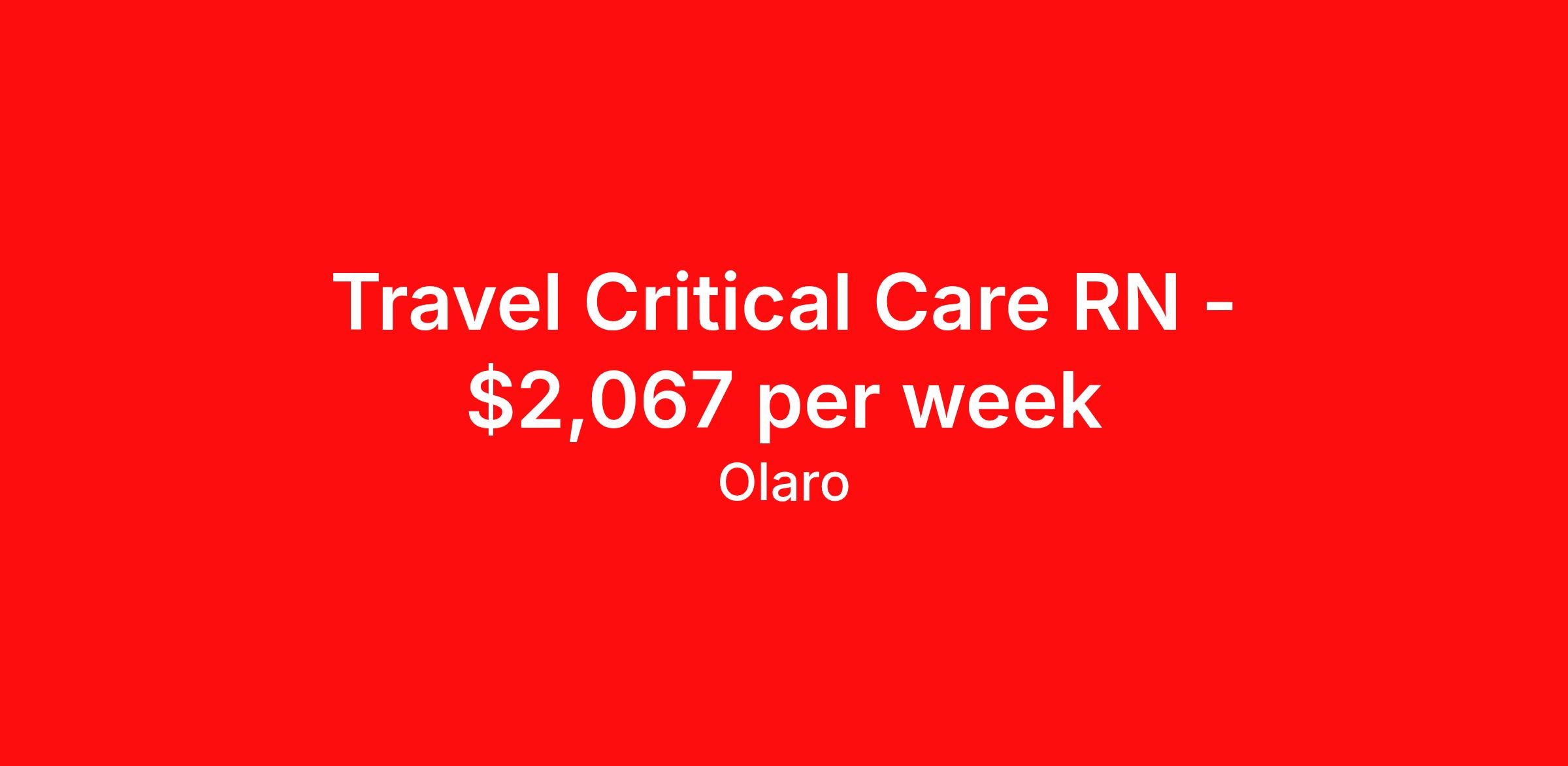 Olaro is seeking a travel nurse RN ICU - Intensive Care Unit for a travel nursing job in Cleveland, Ohio. Job Description & Requirements Specialty: ICU - Intensive Care Unit Discipline: RN Start Date: ASAP Duration: 13 weeks 36 hours per week Shift: 12 hours Employment Type: Travel PHP Job ID 432956. Pay package is based on 12 hour shifts and 36 hours per week (subject to confirmation) with tax-free stipend amount to be determined. Posted job title: ICU Registered Nurse About Olaro Olaro Company Description Olaro is a trusted partner in healthcare staffing, connecting nurses and allied health professionals with opportunities nationwide. For over 35 years, we’ve helped clinicians expand their horizons by matching them with assignments that fit their lifestyle, career goals, and personal ambitions. At Olaro, we value your expertise and support your growth at every step. We offer competitive pay, comprehensive benefits, and access to diverse clinical experiences that build your skills and open doors to new possibilities. With 24/7 support, streamlined onboarding, and a team committed to your success, you’ll always have a proven guide by your side. Whether you want to explore new locations, broaden your clinical experience, or achieve better work–life balance, Olaro provides the flexibility and support to help you thrive. Join us, and let’s shape the future of healthcare together.