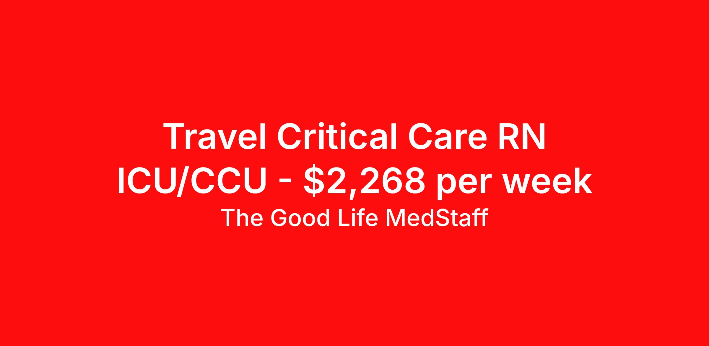 The Good Life MedStaff is seeking a travel nurse RN ICU - Intensive Care Unit for a travel nursing job in West Burlington, Iowa. Job Description & Requirements Specialty: ICU - Intensive Care Unit Discipline: RN Start Date: 03/23/2026 Duration: 13 weeks 36 hours per week Shift: 12 hours, nights Employment Type: Travel The Good Life MedStaff Job ID 35865568. Pay package is based on 12 hour shifts and 36.0 hours per week (subject to confirmation) with tax-free stipend amount to be determined. Posted job title: RN:ICU,19:00:00-07:00:00 About The Good Life MedStaff We are a Travel Nursing Agency, connecting compassionate caregivers, who love adventure, with amazing opportunities. We want to bring you to The Good Life! Connecting, Caring, and Competing for the best opportunities to help you reach your goals! Benefits Medical benefits Dental benefits Vision benefits 401k retirement plan Referral bonus