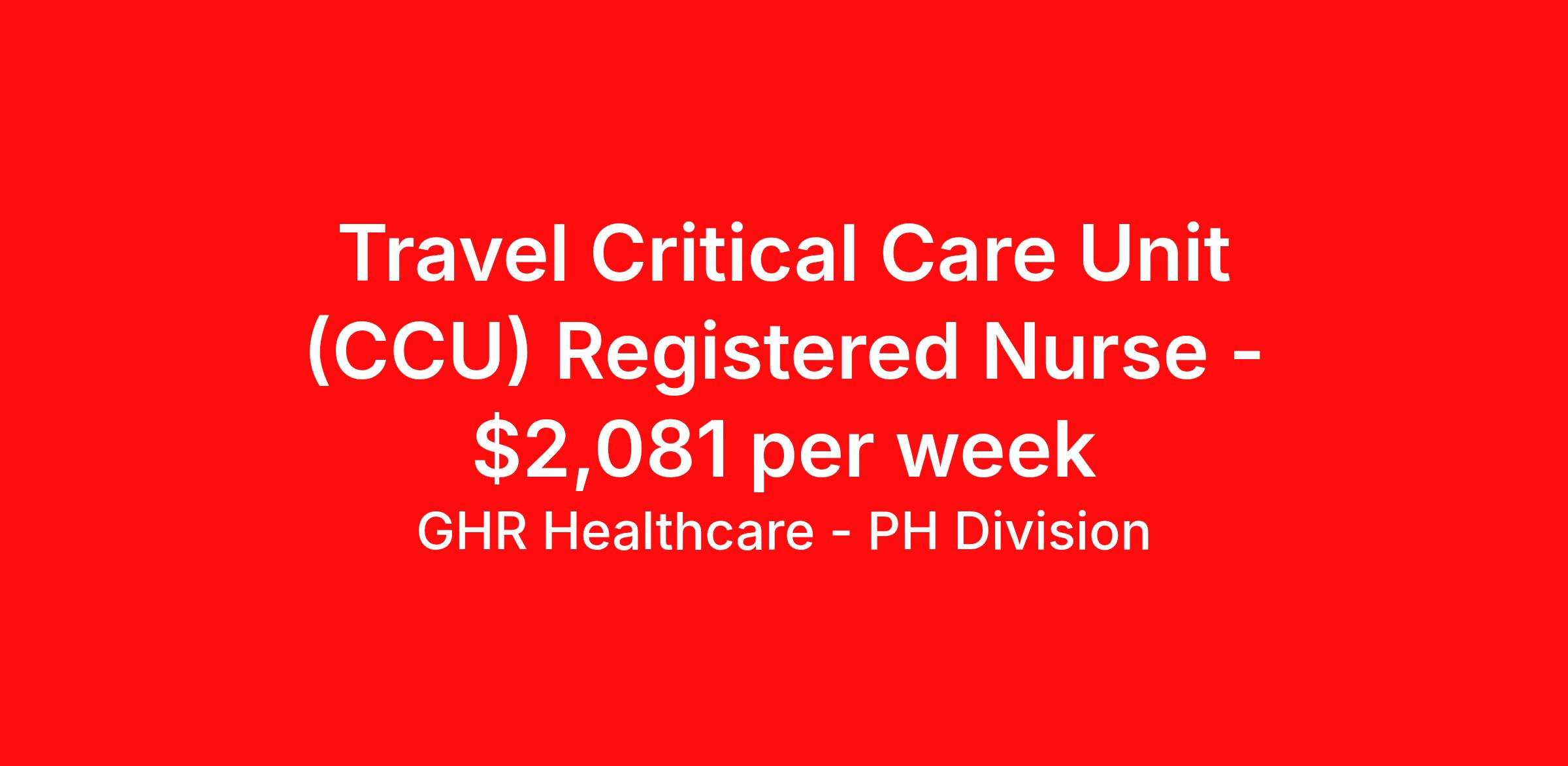 GHR Healthcare - PH Division is seeking a travel nurse RN ICU - Intensive Care Unit for a travel nursing job in Albany, Georgia. Job Description & Requirements Specialty: ICU - Intensive Care Unit Discipline: RN Start Date: 03/30/2026 Duration: 17 weeks 36 hours per week Shift: 12 hours Employment Type: Travel Planet Healthcare Job ID 76343744. Pay package is based on 12 hour shifts and 36 hours per week (subject to confirmation) with tax-free stipend amount to be determined. About GHR Healthcare - PH Division For over 30 years, GHR Healthcare has been the bridge between healthcare professionals and the facilities that need them nationwide. We're committed to uncovering your ideal fit, supported by GHR's dedication to competitive compensation, transparent communication, and a devoted team that genuinely cares about your career journey. You can trust us to stand by your side as your advocate, confidante, and partner in advancing your career. At GHR, care and consideration are at the heart of everything we do. Visit ghrhealthcare.com to learn more.