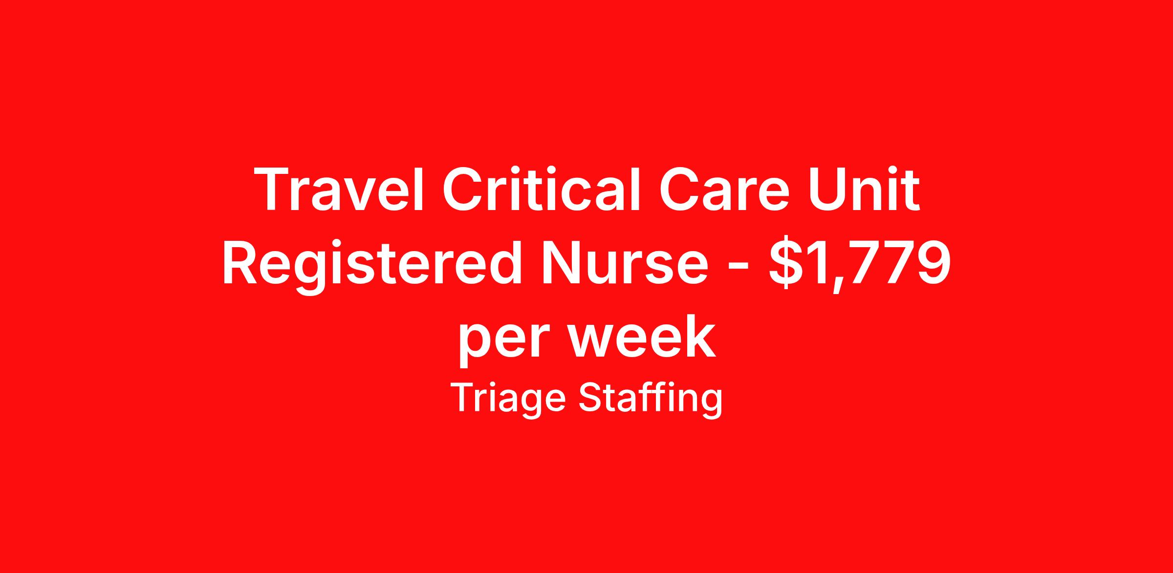 Travel Critical Care Unit Registered Nurse - $1,779 per week