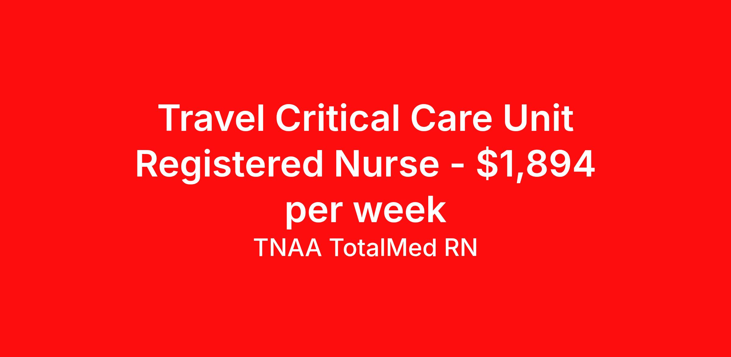 TNAA TotalMed RN is seeking a travel nurse RN CCU - Coronary Care for a travel nursing job in Santa Fe, New Mexico. Job Description & Requirements Specialty: CCU - Coronary Care Discipline: RN Duration: 13 weeks 36 hours per week Shift: 12 hours, nights Employment Type: Travel We're looking for Intensive Care Unit RNs for an immediate travel nurse opening in Santa Fe, NM. The right nurse should have 1-2 years recent acute care experience. Read below for more requirements. As an ICU Travel Nurse, you'll be responsible for evaluating and monitoring patients in an Intensive Care Unit setting. ICU RNs provide the most direct care to patients in life-threatening situations, documenting and providing physician-directed care, assessing and implementing patient care plans, and delegating to other care providers as appropriate. As an ICU RN you will also be providing education and support to patient families, possibly for long-term care needs. As an ICU Travel Nurse, you should be prepared to perform the following tasks: Provide basic bedside care. Prepare, administer and record prescribed medication, reporting any adverse reactions to treatment. Order and evaluate diagnostic tests. Take samples for lab work, order corresponding lab work and interpret reports. Monitor and adjust specialized equipment, and interpret and record electronic displays. Ensure proper placement and functioning of catheters, leads and tubing. Communicate patients' conditions to family members. ICU Travel Nurses should be able to stand and walk for long periods of time, as well as bend, lean and stoop without difficulty. RNs should be able to easily lift 20 pounds. Moving or lifting of patients may require lifting of up to 50 pounds at times. RNs may face hazards from exposure to certain chemicals or infectious diseases and will treat patients that may be confused, agitated, and/or uncooperative. Requirements*: ACLS, BLS, TNCC, 2 Years * Additional certifications may be required before beginning an assignment. TotalMed Travel Job ID 1380573. Pay package is based on 12 hour shifts and 36 hours per week (subject to confirmation) with tax-free stipend amount to be determined. Posted job title: Intensive Care Unit - ICU RN - Travel Nurse About TNAA TotalMed RN TotalMed is a Top Ten, travel nursing and healthcare staffing agency with the mission of igniting purpose in healthcare. The organization staffs nurses, therapists, pharmacists, and other clinicians of all specialties in all 50 states. They offer local and travel jobs and match caregivers with the right organization to assist both facilities and patients. As an organization, they focus on putting highly-skilled staff into facilities to ensure adequate staffing for a better patient experience. TotalMed specializes in recruiting and placing healthcare professionals in travel, PRN, and permanent positions across the country in Nursing and Allied Health. Throughout 2020, the organization filled roles at even the most short-staffed facilities during the most challenging time in healthcare. By matching the right travel healthcare professional with the right organization, TotalMed continues to offer a lifeline to facilities and their patients. Benefits Weekly pay Guaranteed Hours Continuing Education 401k retirement plan Sick pay Wellness and fitness programs Referral bonus Employee assistance programs Medical benefits Dental benefits Vision benefits Benefits start day 1