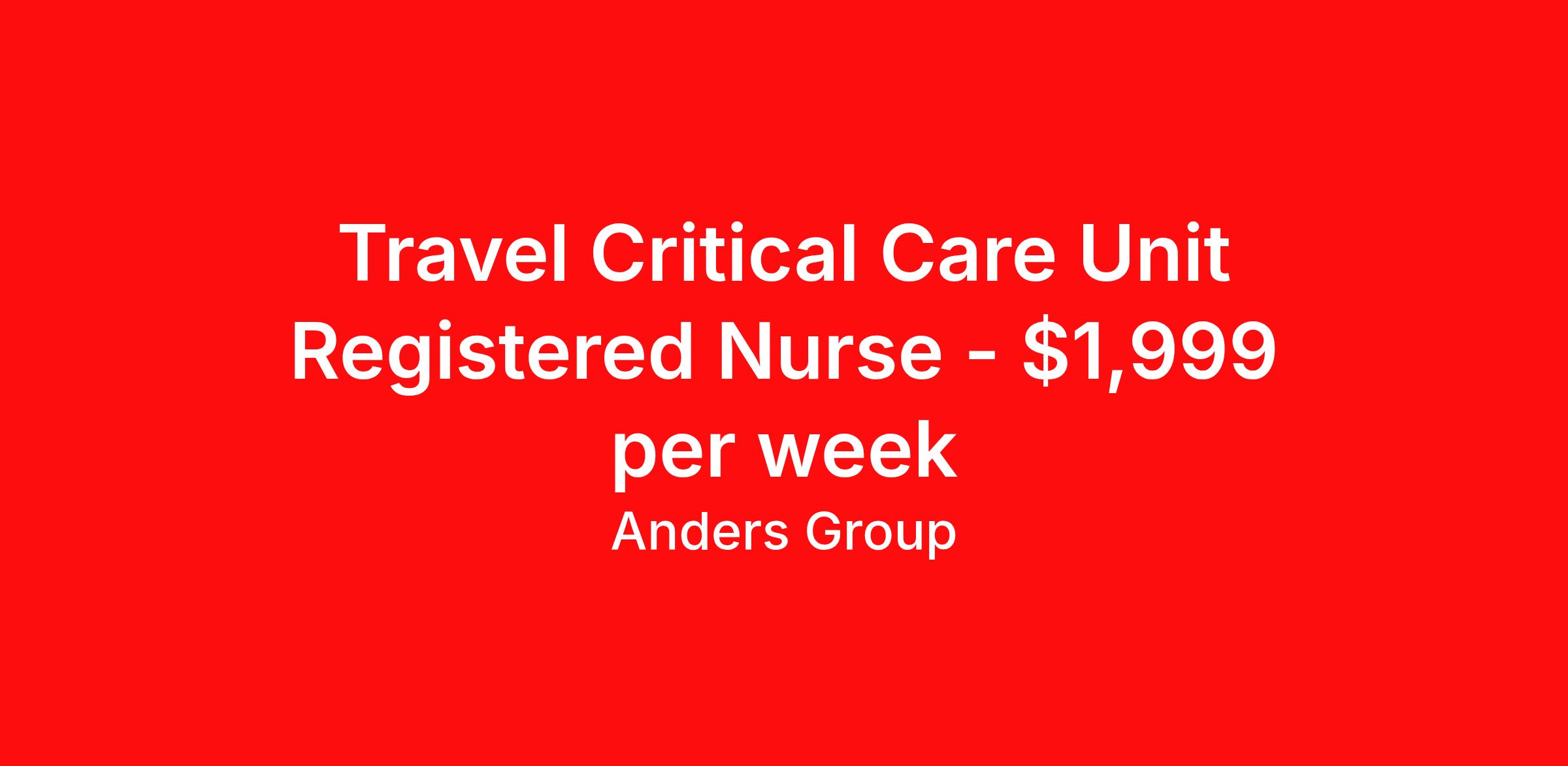 Travel Critical Care Unit Registered Nurse - $1,999 per week