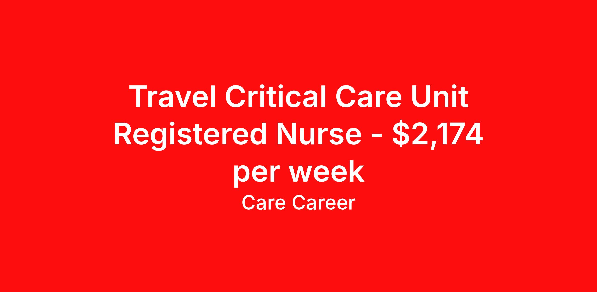 Travel Critical Care Unit Registered Nurse - $2,174 per week