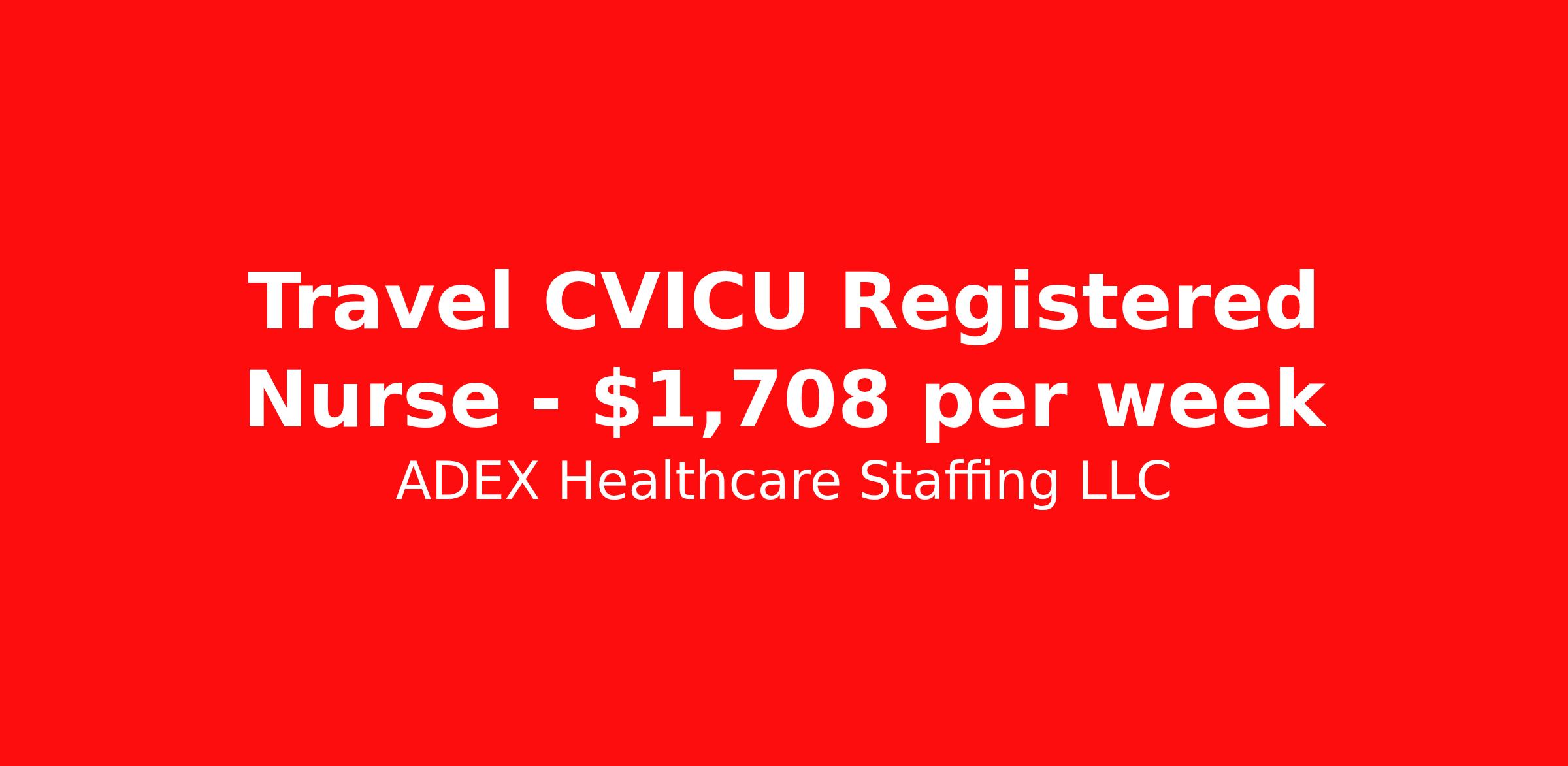 ADEX Healthcare Staffing LLC is seeking a travel nurse RN CVICU for a travel nursing job in Fort Worth, Texas. Job Description & Requirements Specialty: CVICU Discipline: RN Start Date: ASAP Duration: 13 weeks 36 hours per week Shift: 12 hours, nights Employment Type: Travel RN Position Job Notes: Travel or Local Registered Nurse needed for ASAP start. A minimum of 2 years of recent hospital bedside experience is required. Candidates must be able to start within 5 weeks. Opportunity for extension upon successful completion of the initial assignment. $750 referral bonus available. Opportunity: RN - CVICU Job Details: • Work 12-hour night shifts from 7:00 PM to 7:00 AM • 2 weekend shifts required biweekly • No on-call responsibilities • Maintain 2:1 nurse to patient ratio (2 patients per 1 RN) • Must have 2 years of critical care experience (adult ICU, CVICU, Neuro ICU, or any critical care specialty) • Ventilator experience required along with arterial/central line and chest tube management skills • CVICU specific experience preferred, especially CABG recovery, CRRT, and Impella • Work with specialized equipment including GE monitors, EV 1000, Hemispheres, CRRT (NextStage), Impella, Swan Ganz, arterial lines, chest tubes, and ventilators • Use Meditech EMR system (experience preferred) • Perform hemodynamic monitoring, Swan Ganz procedures, arterial lines, and chest tube management • Float to Medical ICU, Neuro Surgical ICU, and Cardiac PCU as needed • Royal blue scrubs required • BSN and CCRN certification preferred • Must be a team player who works well with collaborative care approach Facility: This healthcare facility operates a 16-bed Cardiovascular Intensive Care Unit located on the 3rd floor of the main building. The CVICU maintains high staffing standards with 45 all-RN staff members and provides specialized cardiac care with advanced monitoring and life support equipment. The unit focuses on collaborative patient care and maintains excellent nurse-to-patient ratios to ensure optimal outcomes for cardiovascular patients requiring intensive care services. Location: Fort Worth, TX Fort Worth offers a dynamic blend of Western heritage and modern metropolitan amenities, featuring a thriving cultural scene, excellent dining, and numerous outdoor recreation opportunities. The city provides an affordable cost of living compared to other major Texas cities while offering career growth opportunities in one of the nation's fastest-growing healthcare markets. Adex Job ID 965627. Pay package is based on 12 hour shifts and 36 hours per week (subject to confirmation) with tax-free stipend amount to be determined. About ADEX Healthcare Staffing LLC ADEX has been placing healthcare professionals across the US since 2004. Originally founded in Atlanta, GA, the company's headquarters are now located in Tampa, FL. JCAHO certified since 2009. Benefits Referral bonus
