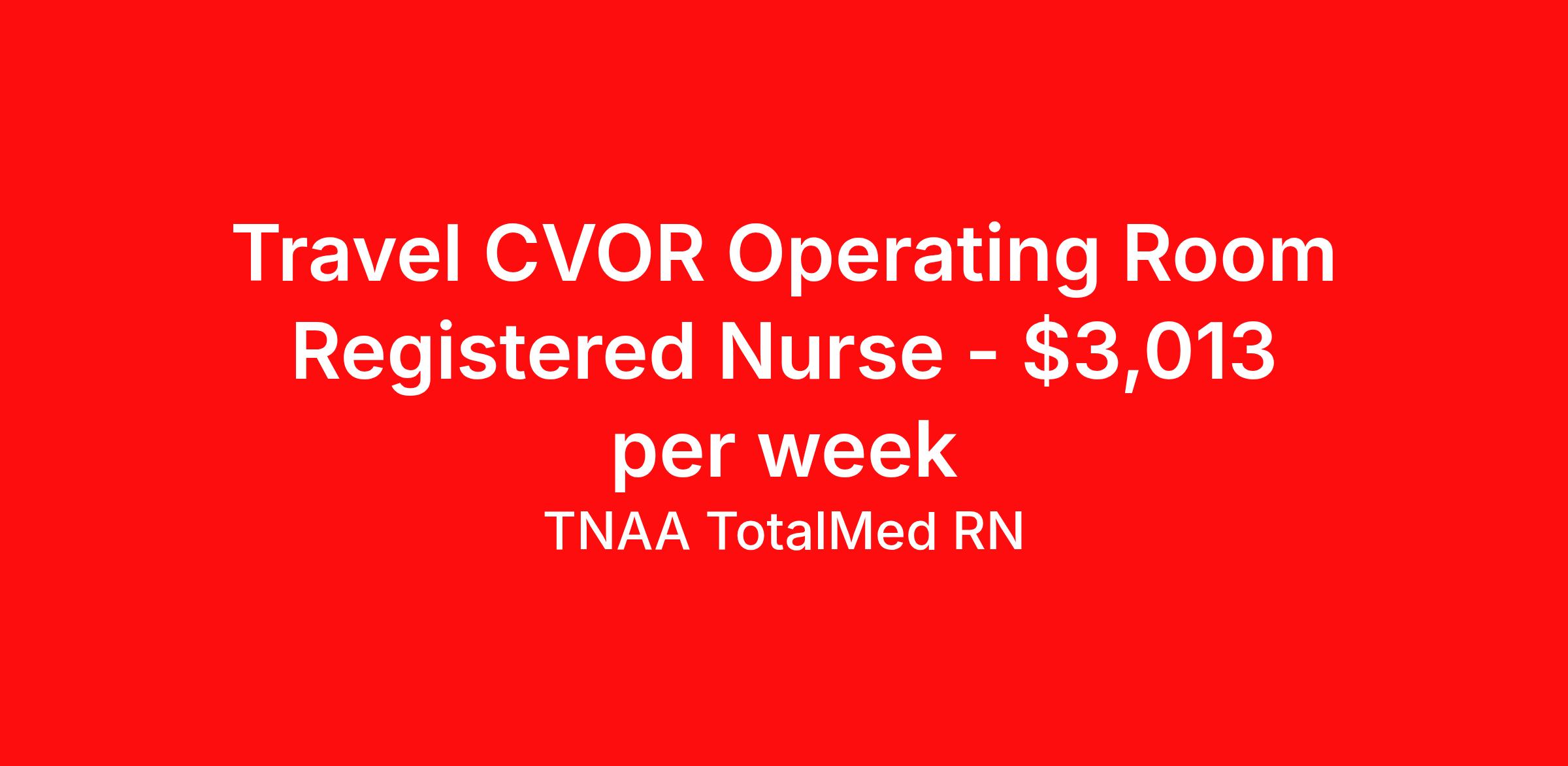 TNAA TotalMed RN is seeking a travel nurse RN CVOR for a travel nursing job in Newark, New Jersey. Job Description & Requirements Specialty: CVOR Discipline: RN Duration: 13 weeks 36 hours per week Shift: 12 hours, days Employment Type: Travel We're looking for Cardiovascular Operating Room RNs for an immediate travel nurse opening in Newark, NJ. The right RN should have 1-2 years recent acute care experience. Read below for more requirements. As a CVOR RN, you'll be responsible for providing professional CVOR care services to support a team of physicians, RNs and other medical staff. Our CVOR Travel Nurses demonstrate advanced clinical expertise in circulating for a variety of cardiothoracic surgical procedures and other complex surgeries. As a CVOR Travel Nurse, you should be prepared to perform the following tasks: Assess, plan and evaluate the nursing care needs of the patient before, during and after a surgical procedure. Participate in the care of patients receiving conscious sedation. Administer prescribed medications, apply dressings, monitor vital signs. Assist physician during procedures. Maintain aseptic techniques and actively monitor situations which could lead to breaches in aseptic technique. Coordinate the operating room with respect to sterility, cleanliness, availability of functioning equipment and supplies. Ensure the proper handling of specimens. CVOR Travel Nurses should be able to stand and walk for long periods of time, as well as bend, lean and stoop without difficulty. RNs should be able to easily lift 20 pounds. Moving or lifting of patients may require lifting of up to 50 pounds at times. Because of the fast-paced environment, Cardiovascular OR RNs must possess good skills for coping with stress and be able to relate to people of all ages and backgrounds. Requirements*: ACLS, BLS, NIH, 2 Years * Additional certifications may be required before beginning an assignment. TotalMed Travel Job ID 1410002. Pay package is based on 12 hour shifts and 36 hours per week (subject to confirmation) with tax-free stipend amount to be determined. Posted job title: Cardiovascular Operating Room - CVOR RN - Travel Nurse About TNAA TotalMed RN TotalMed is a Top Ten, travel nursing and healthcare staffing agency with the mission of igniting purpose in healthcare. The organization staffs nurses, therapists, pharmacists, and other clinicians of all specialties in all 50 states. They offer local and travel jobs and match caregivers with the right organization to assist both facilities and patients. As an organization, they focus on putting highly-skilled staff into facilities to ensure adequate staffing for a better patient experience. TotalMed specializes in recruiting and placing healthcare professionals in travel, PRN, and permanent positions across the country in Nursing and Allied Health. Throughout 2020, the organization filled roles at even the most short-staffed facilities during the most challenging time in healthcare. By matching the right travel healthcare professional with the right organization, TotalMed continues to offer a lifeline to facilities and their patients. Benefits Weekly pay Guaranteed Hours Continuing Education 401k retirement plan Sick pay Wellness and fitness programs Referral bonus Employee assistance programs Medical benefits Dental benefits Vision benefits Benefits start day 1