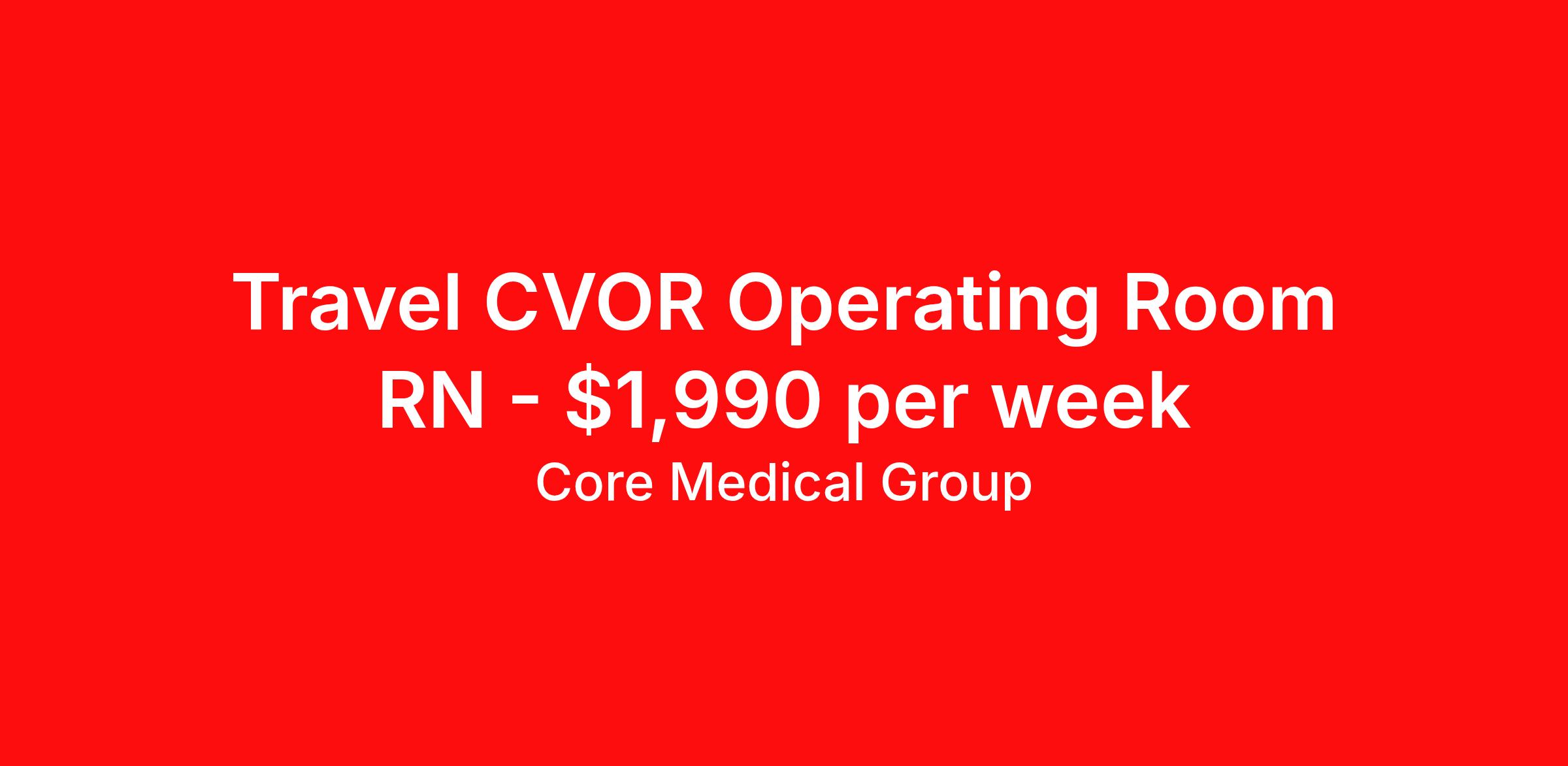 Core Medical Group is seeking a travel nurse RN CVOR for a travel nursing job in Arlington, Texas. Job Description & Requirements Specialty: CVOR Discipline: RN Start Date: 03/24/2026 Duration: 13 weeks 36 hours per week Shift: 12 hours Employment Type: Travel Client in TX seeking Registered Nurse: CVOR for the following shift(s): Days We are looking for a healthcare professional who is ready to provide exceptional patient care in this contract/travel role. Contract/travel assignments are typically 13 weeks, with potential to extend. Help us continue our mission to connect people, improve lives, and give back to the community by joining the CoreMedical Group team. When you work with CoreMedical Group, we put you first and treat you like family, supporting you every step of the way. CoreMedical Group is one of the largest healthcare staffing agencies in the country, with travel and contract positions located across the United States. Our recruiters will help you find the perfect job, whether it's across the country or across the street. In addition to dedicated, personalized support from your recruiter, when you work with CoreMedical Group you'll receive: Access to an extensive benefits package, including day 1 health, dental, and vision insurance, employer paid life insurance, a health reimbursement account, and more! Weekly paychecks with competitive pay packages Matching 401(k) benefits to help you save for retirement Licensure assistance and reimbursement to set you up for success on your contract Travel reimbursement and dedicated housing support while on assignment Referral cash bonuses when you connect us with other clinicians CoreMedical Group also offers you a free, all-inclusive vacation each year as our way of saying "thank you" for your hard work. Join other healthcare professionals on the annual Club CoreMed retreat and you'll see why our contract and travel professionals come back to us year after year! Your career is too valuable to tackle on your own. Let CoreMedical Group help you with your healthcare journey! *Estimate of weekly payments is intended for informational purposes and includes hourly wages, as well as reimbursements for meal & incidental expenses, and housing expenses incurred on behalf of the Company. Any benefits (medical/dental/vision) are in addition to the weekly pay. Please speak with your Recruiter for additional details. Estimated payments are subject to change until formal offer of assignment is made and accepted. Core Medical Group Job ID 1367685. Pay package is based on 12 hour shifts and 36 hours per week (subject to confirmation) with tax-free stipend amount to be determined. Posted job title: RN About Core Medical Group CoreMedical Group is one of the largest healthcare staffing agencies in the country. We have jobs nationwide in travel nursing, travel allied health, interim, locum tenens, and permanent placements! Join the staffing agency with Club CoreMed, the best perk in the industry - an all inclusive paid trip to a tropical resort! Benefits Weekly pay Holiday Pay Guaranteed Hours Continuing Education 401k retirement plan Pet insurance Company provided housing options Sick pay Wellness and fitness programs Mileage reimbursement Referral bonus Employee assistance programs Medical benefits Dental benefits Vision benefits Benefits start day 1 License and certification reimbursement Life insurance Discount program