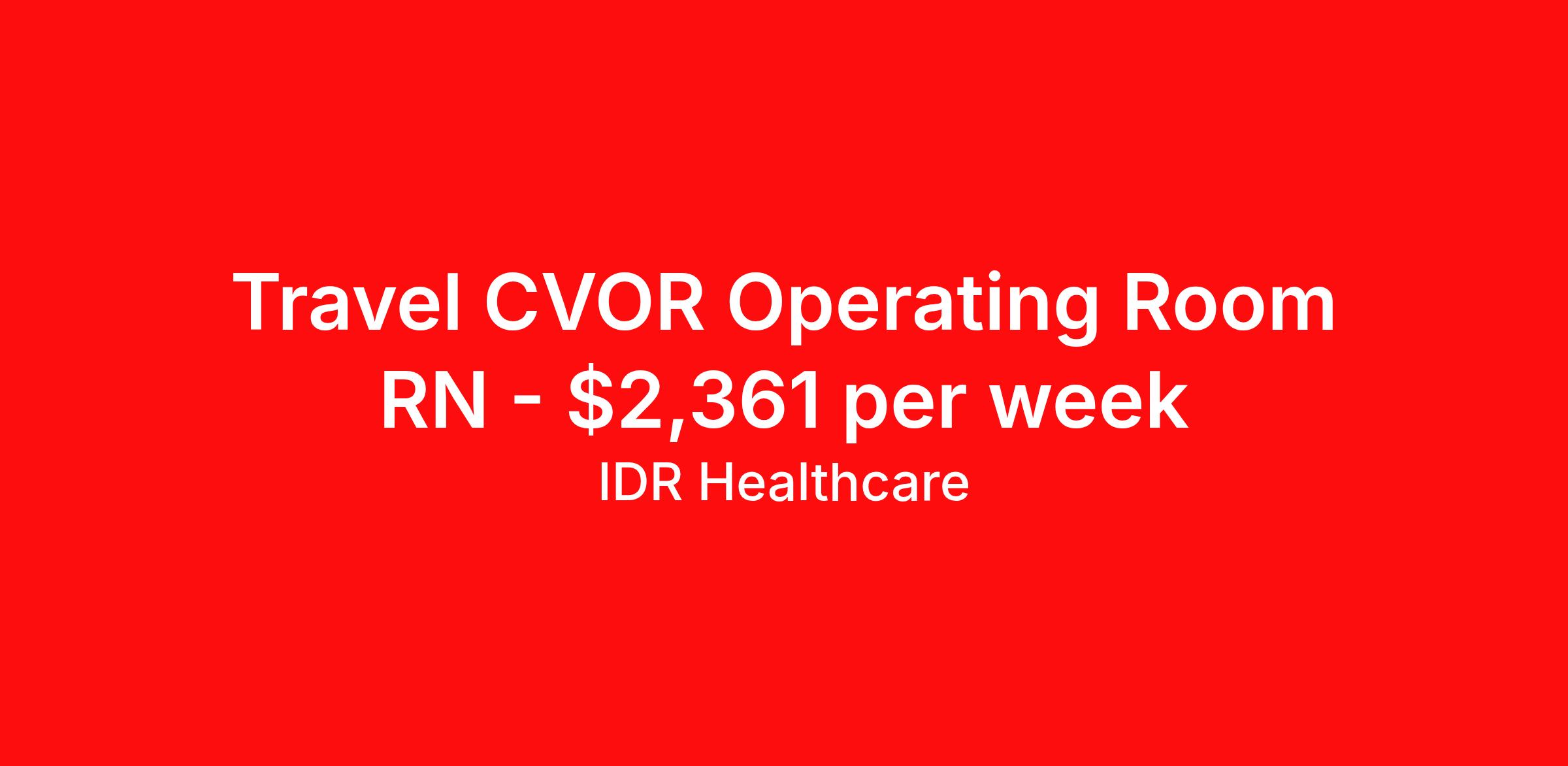 IDR Healthcare is seeking a travel nurse RN CVOR for a travel nursing job in Arlington, Texas. Job Description & Requirements Specialty: CVOR Discipline: RN Start Date: 03/24/2026 Duration: 13 weeks 36 hours per week Shift: 12 hours, days Employment Type: Travel IDR Healthcare is an awarding winning staffing firm that believes it is a privilege and awesome responsibility to serve those who selflessly care for others. Our mission is to empower healthcare professionals to achieve their fullest potential both personally and professionally while they create positive change within the healthcare community. We exercise true grit, tenacity, and authenticity while embracing and ownership mindset to go above and beyond providing healthcare professionals a world class experience. We are employee owned and our travelers and clinicians earn shares/equity by just completing multiple assignments! We have been named SIA’s Fastest Growing Staffing Firms and have won ClearlyRated® Best of Staffing for 11 consecutive years! This cements our commitment to clinician satisfaction earning top net promoter scores putting us in the top 2% of agencies in North America! TravelFarWithIDR and see what an extraordinary experience is all about! Benefits 2024 World Staffing Best Staffing Firms to Work For! ESOP (Equity) Healthcare Benefits for up to 30 days Between Assignments Comprehensive Health Insurance Dental and Vision Insurance Sign-On, Completion, & Referral Bonus Programs License and Certification Reimbursement Weekly Pay and Competitive Compensation Large Network of Clients and Job Opportunities 401k retirement plan Exclusive Assignments IDR Job ID 497911. Pay package is based on 12 hour shifts and 36 hours per week (subject to confirmation) with tax-free stipend amount to be determined. About IDR Healthcare IDR Healthcare is an awarding winning staffing firm that believes it is a privilege and awesome responsibility to serve those who selflessly care for others. Our mission is to empower healthcare professionals to achieve their fullest potential both personally and professionally while they create positive change within the healthcare community. We exercise true grit, tenacity, and authenticity while embracing and ownership mindset to go above and beyond providing healthcare professionals a world class experience. We are employee owned and our travelers and clinicians earn shares/equity by just completing multiple assignments! We have been named SIA’s Fastest Growing Staffing Firms and have won ClearlyRated® Best of Staffing for 11 consecutive years! This cements our commitment to clinician satisfaction earning top net promoter scores putting us in the top 2% of agencies in North America! Help us give back! For every booked assignment, proceeds are donated to St. Jude and Feeding America! Last year we raised over $18,000 for St. Jude and provided over 49,000 meals for children in need. TravelFarWithIDR and see what it is all about! Benefits Weekly pay 401k retirement plan Referral bonus Medical benefits Dental benefits License and certification reimbursement Vision benefits