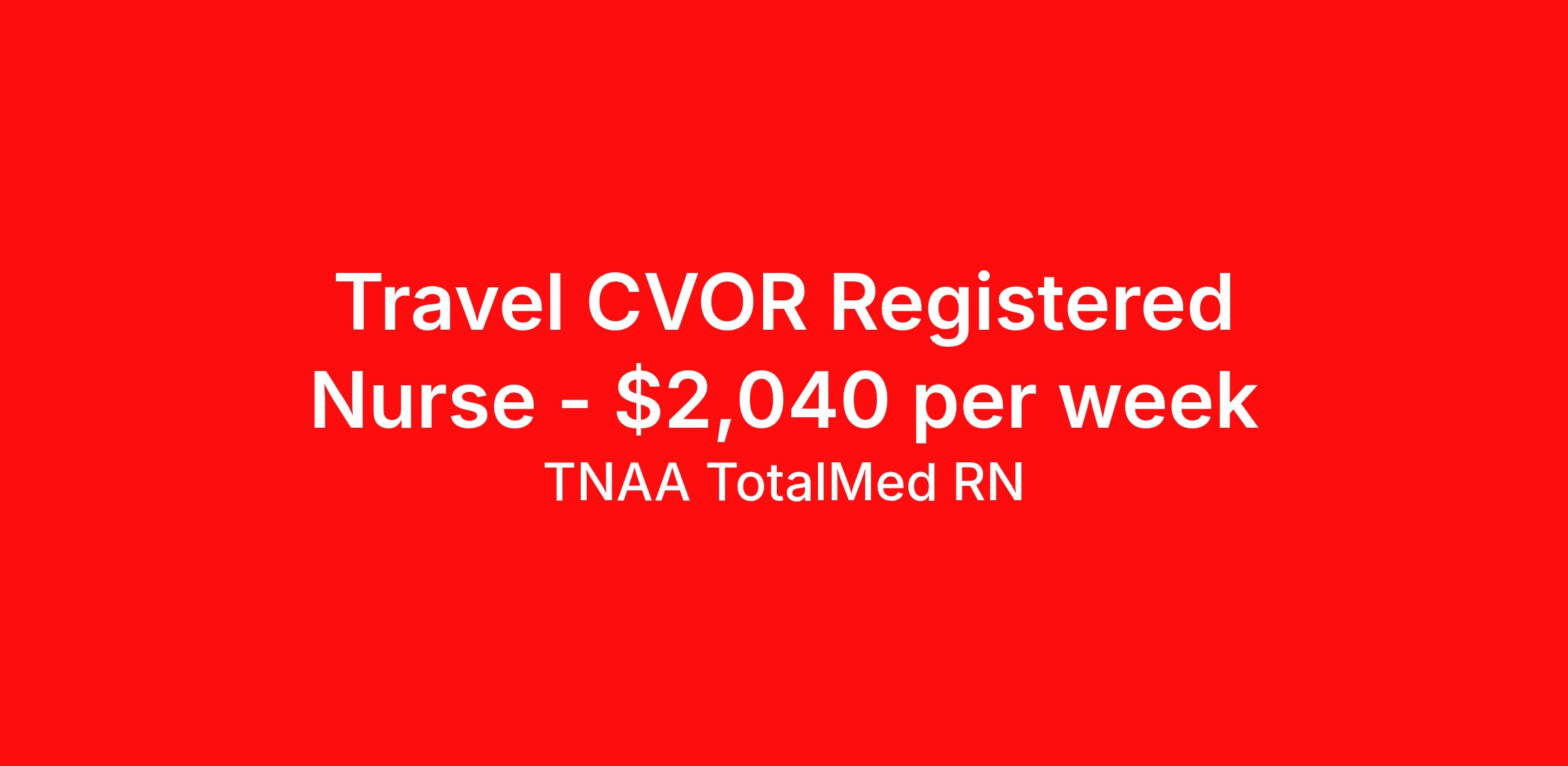 TNAA TotalMed RN is seeking a travel nurse RN CVOR for a travel nursing job in Fort Worth, Texas. Job Description & Requirements Specialty: CVOR Discipline: RN Duration: 13 weeks 36 hours per week Shift: 12 hours, days Employment Type: Travel We're looking for Cardiovascular Operating Room RNs for an immediate travel nurse opening in Fort Worth, TX. The right RN should have 1-2 years recent acute care experience. Read below for more requirements. As a CVOR RN, you'll be responsible for providing professional CVOR care services to support a team of physicians, RNs and other medical staff. Our CVOR Travel Nurses demonstrate advanced clinical expertise in circulating for a variety of cardiothoracic surgical procedures and other complex surgeries. As a CVOR Travel Nurse, you should be prepared to perform the following tasks: Assess, plan and evaluate the nursing care needs of the patient before, during and after a surgical procedure. Participate in the care of patients receiving conscious sedation. Administer prescribed medications, apply dressings, monitor vital signs. Assist physician during procedures. Maintain aseptic techniques and actively monitor situations which could lead to breaches in aseptic technique. Coordinate the operating room with respect to sterility, cleanliness, availability of functioning equipment and supplies. Ensure the proper handling of specimens. CVOR Travel Nurses should be able to stand and walk for long periods of time, as well as bend, lean and stoop without difficulty. RNs should be able to easily lift 20 pounds. Moving or lifting of patients may require lifting of up to 50 pounds at times. Because of the fast-paced environment, Cardiovascular OR RNs must possess good skills for coping with stress and be able to relate to people of all ages and backgrounds. Requirements*: ACLS, BLS, 1 Year * Additional certifications may be required before beginning an assignment. TotalMed Travel Job ID 1385525. Pay package is based on 12 hour shifts and 36 hours per week (subject to confirmation) with tax-free stipend amount to be determined. Posted job title: Cardiovascular Operating Room - CVOR RN - Travel Nurse About TNAA TotalMed RN TotalMed is a Top Ten, travel nursing and healthcare staffing agency with the mission of igniting purpose in healthcare. The organization staffs nurses, therapists, pharmacists, and other clinicians of all specialties in all 50 states. They offer local and travel jobs and match caregivers with the right organization to assist both facilities and patients. As an organization, they focus on putting highly-skilled staff into facilities to ensure adequate staffing for a better patient experience. TotalMed specializes in recruiting and placing healthcare professionals in travel, PRN, and permanent positions across the country in Nursing and Allied Health. Throughout 2020, the organization filled roles at even the most short-staffed facilities during the most challenging time in healthcare. By matching the right travel healthcare professional with the right organization, TotalMed continues to offer a lifeline to facilities and their patients. Benefits Weekly pay Guaranteed Hours Continuing Education 401k retirement plan Sick pay Wellness and fitness programs Referral bonus Employee assistance programs Medical benefits Dental benefits Vision benefits Benefits start day 1