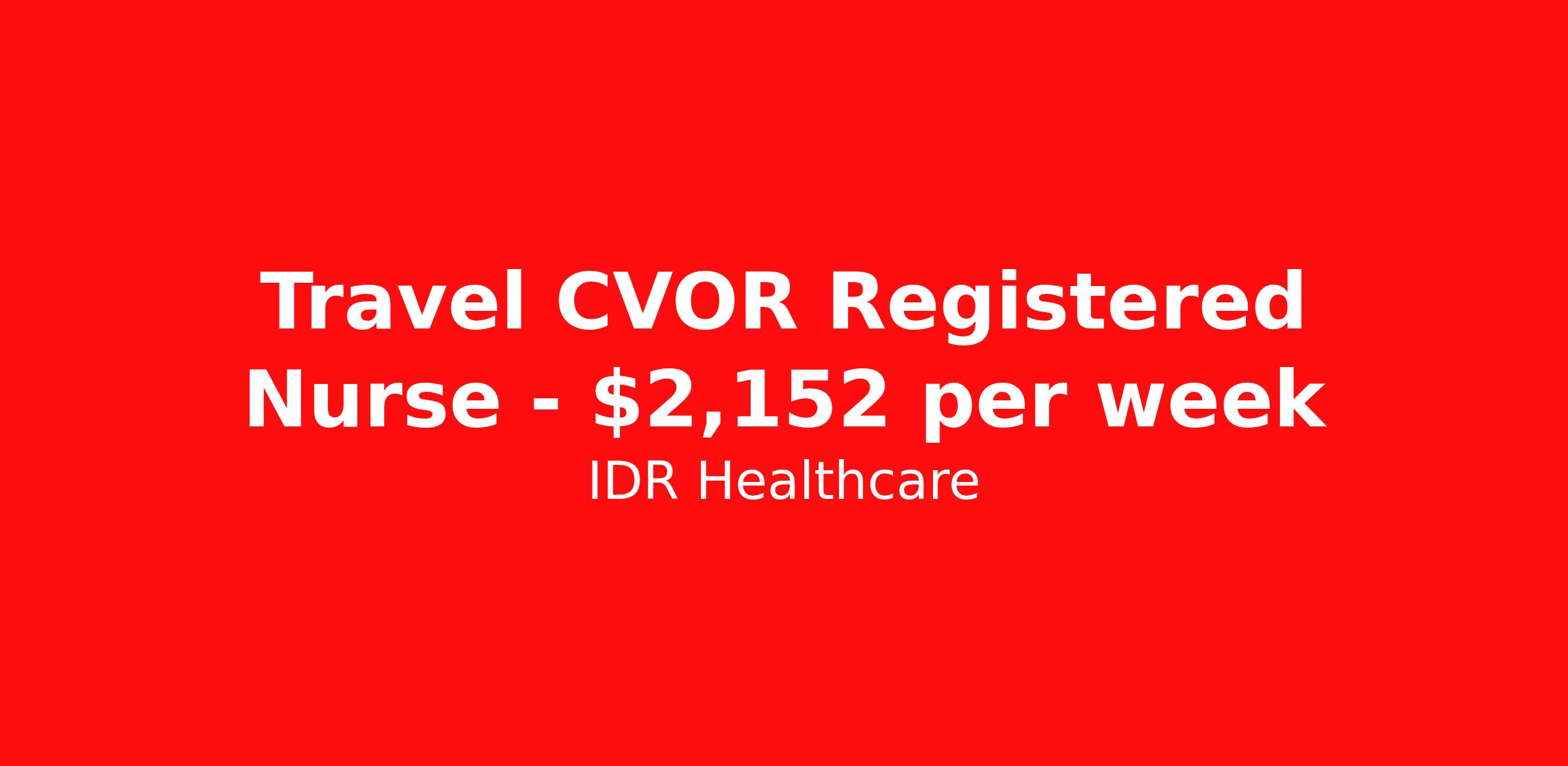 IDR Healthcare is seeking a travel nurse RN CVOR for a travel nursing job in Elyria, Ohio. Job Description & Requirements Specialty: CVOR Discipline: RN Start Date: ASAP Duration: 13 weeks 40 hours per week Shift: 8 hours, days Employment Type: Travel IDR Healthcare is an awarding winning staffing firm that believes it is a privilege and awesome responsibility to serve those who selflessly care for others. Our mission is to empower healthcare professionals to achieve their fullest potential both personally and professionally while they create positive change within the healthcare community. We exercise true grit, tenacity, and authenticity while embracing and ownership mindset to go above and beyond providing healthcare professionals a world class experience. We are employee owned and our travelers and clinicians earn shares/equity by just completing multiple assignments! We have been named SIA’s Fastest Growing Staffing Firms and have won ClearlyRated® Best of Staffing for 11 consecutive years! This cements our commitment to clinician satisfaction earning top net promoter scores putting us in the top 2% of agencies in North America! TravelFarWithIDR and see what an extraordinary experience is all about! Benefits 2024 World Staffing Best Staffing Firms to Work For! ESOP (Equity) Healthcare Benefits for up to 30 days Between Assignments. Comprehensive Health Insurance Dental and Vision Insurance Sign-On, Completion, & Referral Bonus Programs License and Certification Reimbursement Weekly Pay and Competitive Compensation Large Network of Clients and Job Opportunities 401k retirement plan Exclusive Assignments IDR Job ID 392452. Pay package is based on 8 hour shifts and 40 hours per week (subject to confirmation) with tax-free stipend amount to be determined. About IDR Healthcare IDR Healthcare is an awarding winning staffing firm that believes it is a privilege and awesome responsibility to serve those who selflessly care for others. Our mission is to empower healthcare professionals to achieve their fullest potential both personally and professionally while they create positive change within the healthcare community. We exercise true grit, tenacity, and authenticity while embracing and ownership mindset to go above and beyond providing healthcare professionals a world class experience. We are employee owned and our travelers and clinicians earn shares/equity by just completing multiple assignments! We have been named SIA’s Fastest Growing Staffing Firms and have won ClearlyRated® Best of Staffing for 11 consecutive years! This cements our commitment to clinician satisfaction earning top net promoter scores putting us in the top 2% of agencies in North America! Help us give back! For every booked assignment, proceeds are donated to St. Jude and Feeding America! Last year we raised over $18,000 for St. Jude and provided over 49,000 meals for children in need. TravelFarWithIDR and see what it is all about! Benefits Weekly pay 401k retirement plan Referral bonus Medical benefits Dental benefits License and certification reimbursement Vision benefits